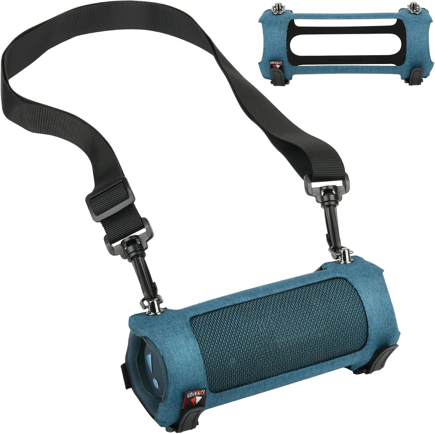Easy to Install: Quick installation and disassembly. Just put the shell on the speaker and secure it with the hook and loop straps. Pay attention to the installation direction of the shell: 1. The support feet on the back of the speaker correspond to the support feet of the case. 2. The buttons on the top of the speaker are kept above, corresponding to the hanging buckles on the case. Package includes: 1*Carry Case Cover, 1*Shoulder Strap.