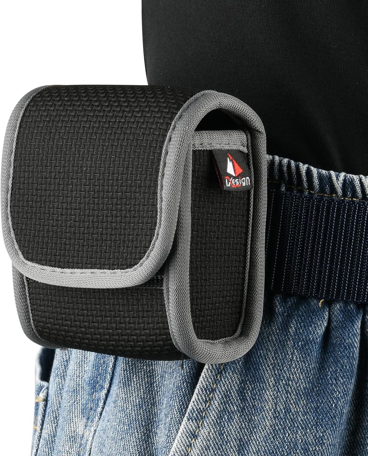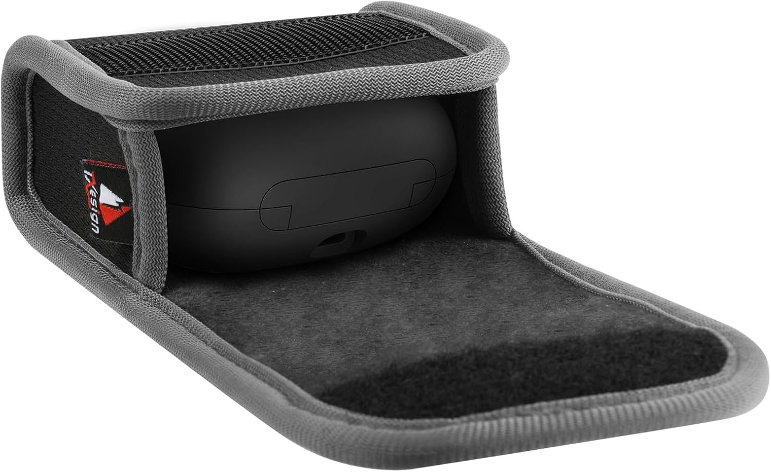 Customers like the build quality, fit, and design of the portable electronic device cover. They mention it’s well-made with premium materials, has a felt-like material on the inside, and goes right on their belts. Some also say it holds their earbuds well and secures them. Customers are satisfied with the protection it provides.