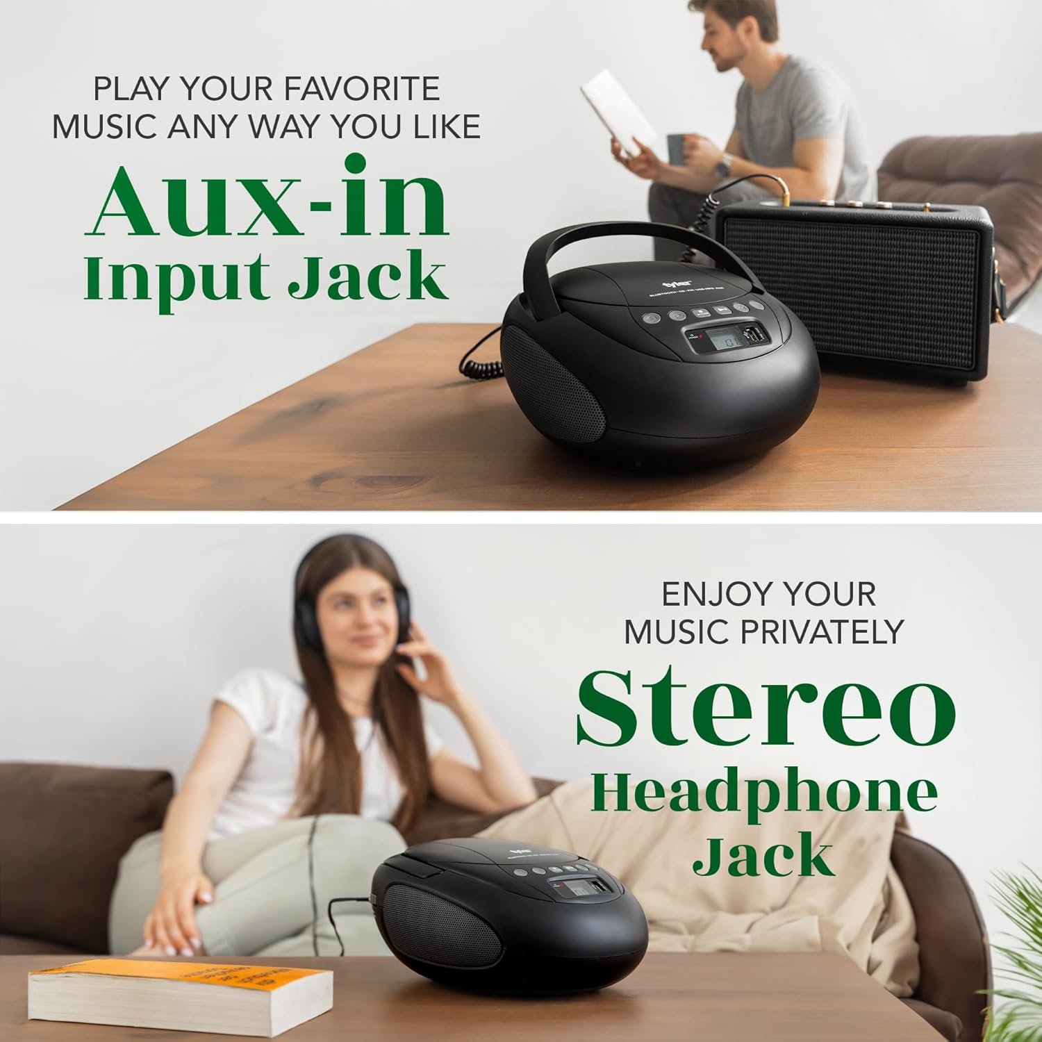 Multiple Playback Options = Blast Your Tunes Anywhere: Our CD player portable offers USB drives, AUX, Bluetooth, and FM stereo radio as play options. Now, you can play your favorite music from any source, anytime, anywhere.