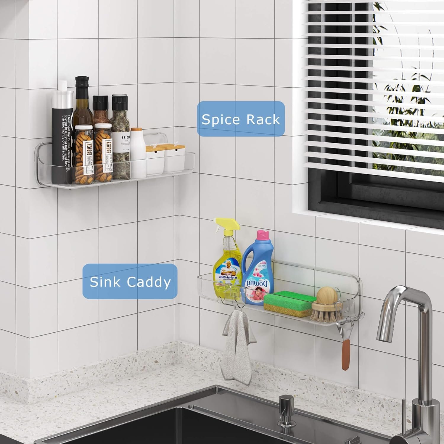 CLEAR SHOWER CADDY: TZAMLI shower caddy set is made of premium plastic with high transparent appearance and long-lasting construction. Clear shower shelves in a modern minimalist style that fit into any shower room’s decor. Handy for inside shower storage needs