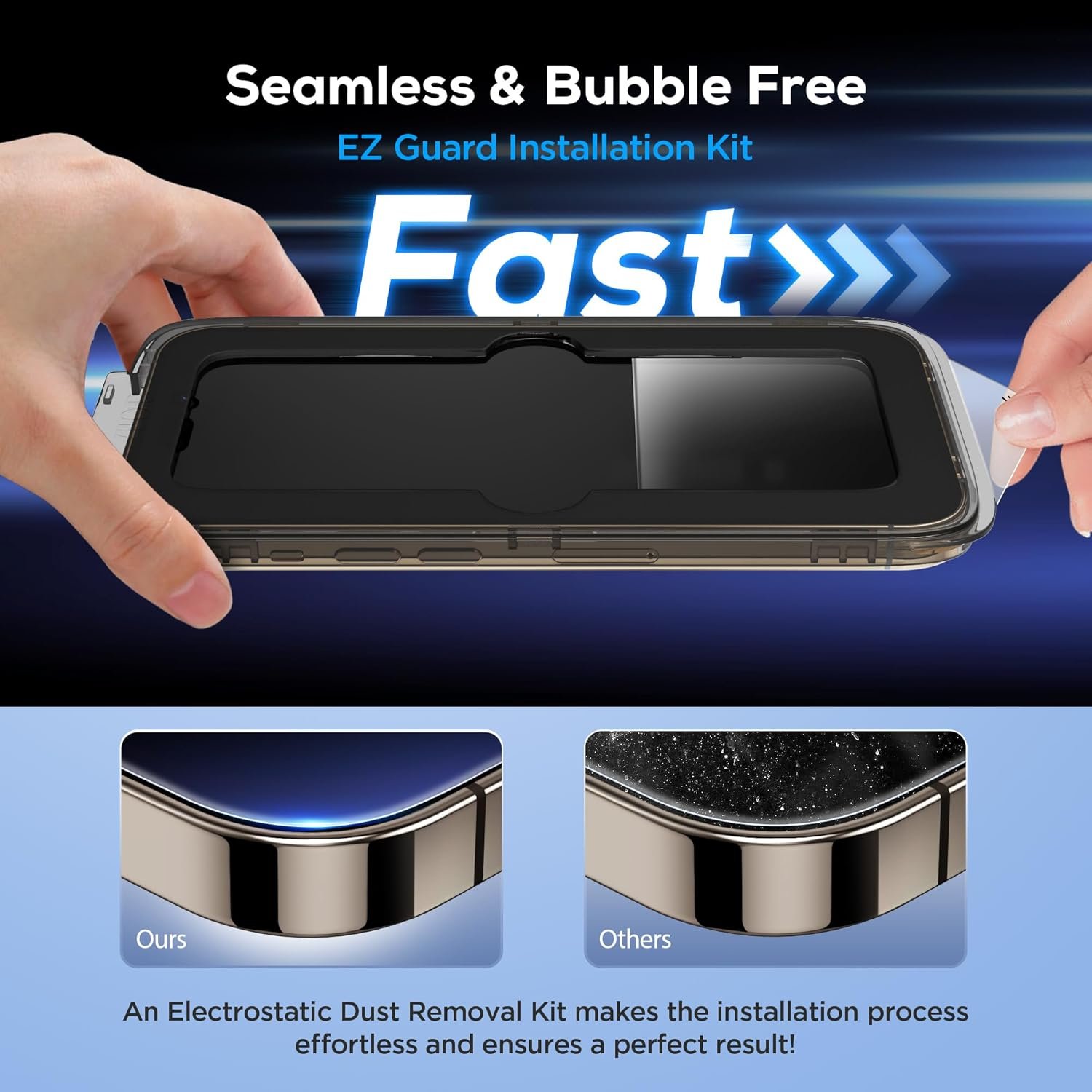 [Seamless & Bubble-Free EZ Guard Easy-Installation Kit] Upcommon’s innovative EZ Guard Easy-Installation kit, featuring an electrostatic dust removal feature, simplifies the installation process and guarantees a perfect result. It’s the easiest way to install a screen protector without any frustration.