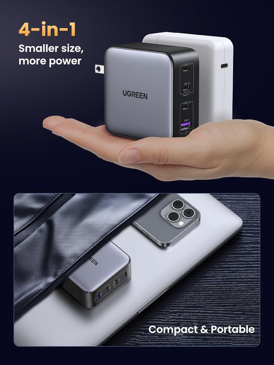 UGREEN 100W USB C Charger, Nexode 4-Port GaN Foldable Compact Fast Wall Charger Power Adapter for MacBook Pro/Air, iPad Pro, iPhone 16 Pro, Galaxy S24 Ultra, Steam Deck, Google Pixelbook
