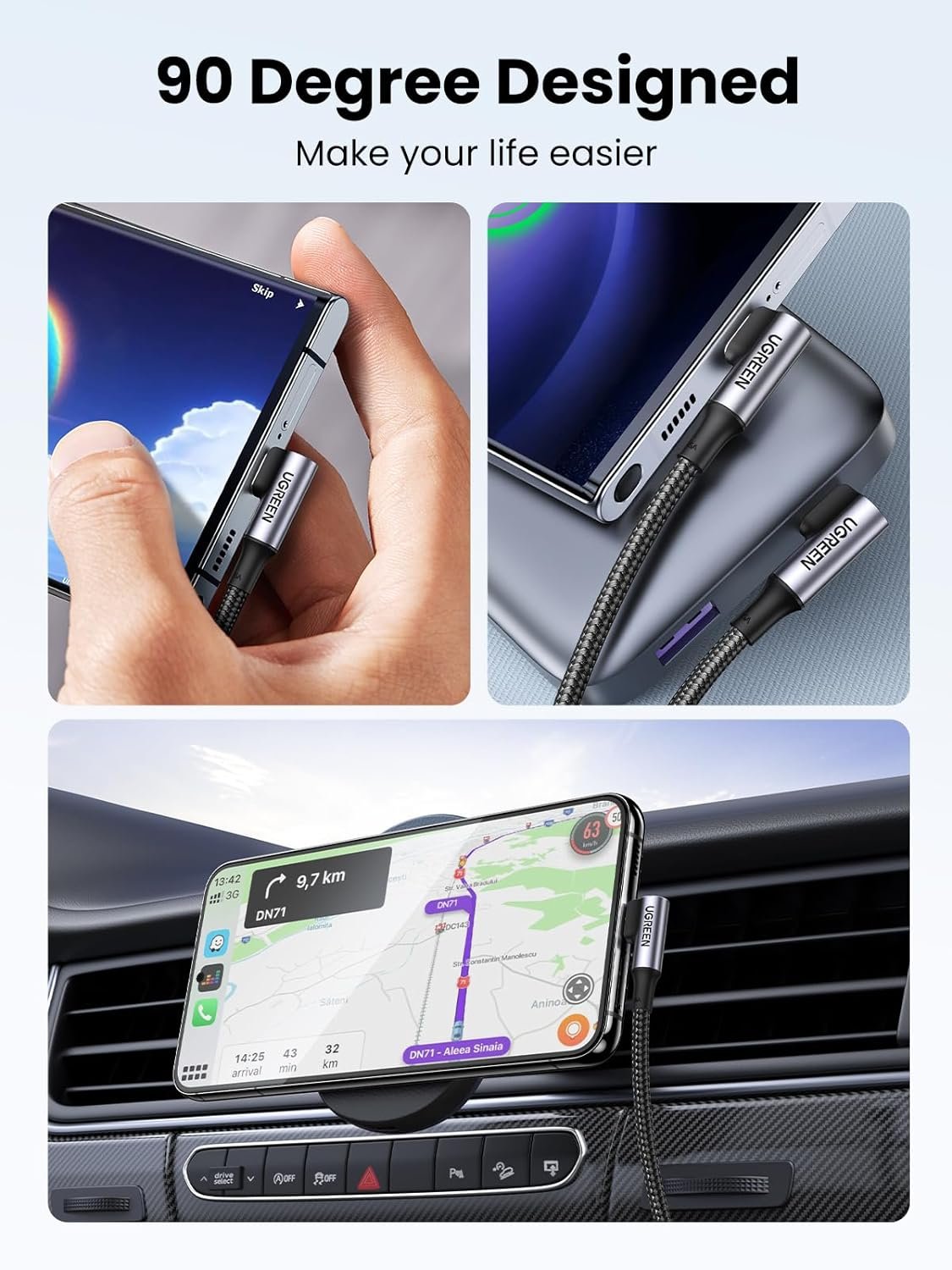 Unique Design: UGREEN USB-C to USB-C cable with an innovative 90 degree L design, is much more convenient and more comfortable for playing games, watching videos, reading e-books while lying on the couch or bed while charging.[Max thickness of phone case allowed is 0.08 inch]