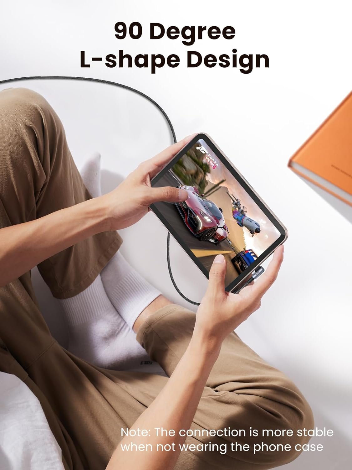 90-degree Right-angle Design: The L-shaped design of this USB C cable can save you space, making it more convenient and comfortable to play games and watch movies while charging. (NOTE: The connection is more stable when the phone is not in a case)