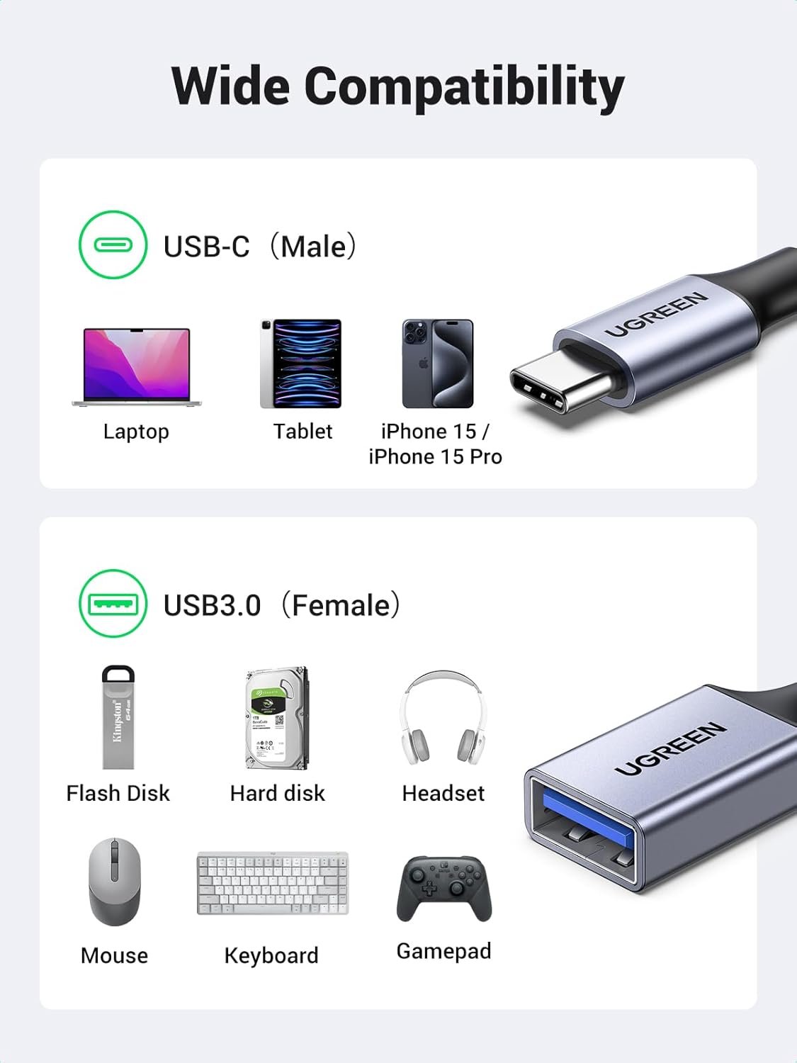 UGREEN USB C to USB A 3.2 Adapter,USB C Male to USB Female Adapter Nylon Braid,Type C OTG Cable Compatible with iPhone 16 15 Pro, Samsung S23 Ultra, MacBook Pro 2022, MacBook Air/Mini,iPad