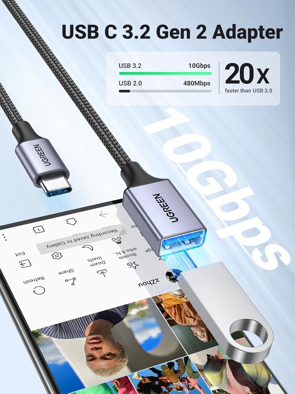 Data Transfer & Charging: 10Gbps high-speed data transfers while 2A charging for devices via USB A port. Transport files via USB A to USB C in seconds,20x faster than the USB 2.0 version (480Mbps)