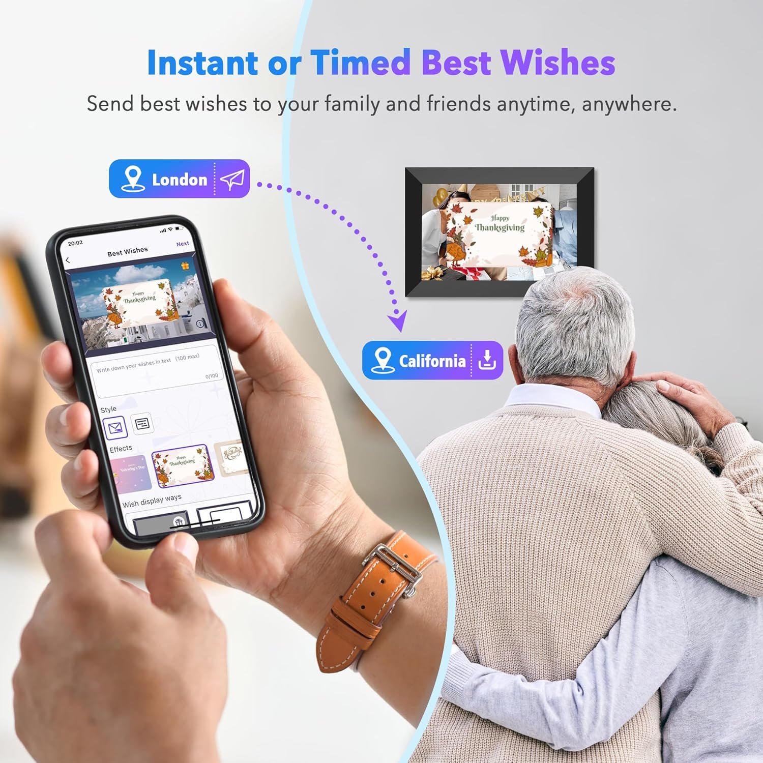 Unlimited Users Connections & Send Wishes:With our electronic photo frames, You can transfer photos and videos with your relatives and friends to share happy moments. Additionally, our electric picture frame features a unique blessing-sending option, enabling you to send personalized greetings to your relatives and friends via the fr-ee Uhale APP for Christmas, Mother’s Day, and Valentine’s Day.