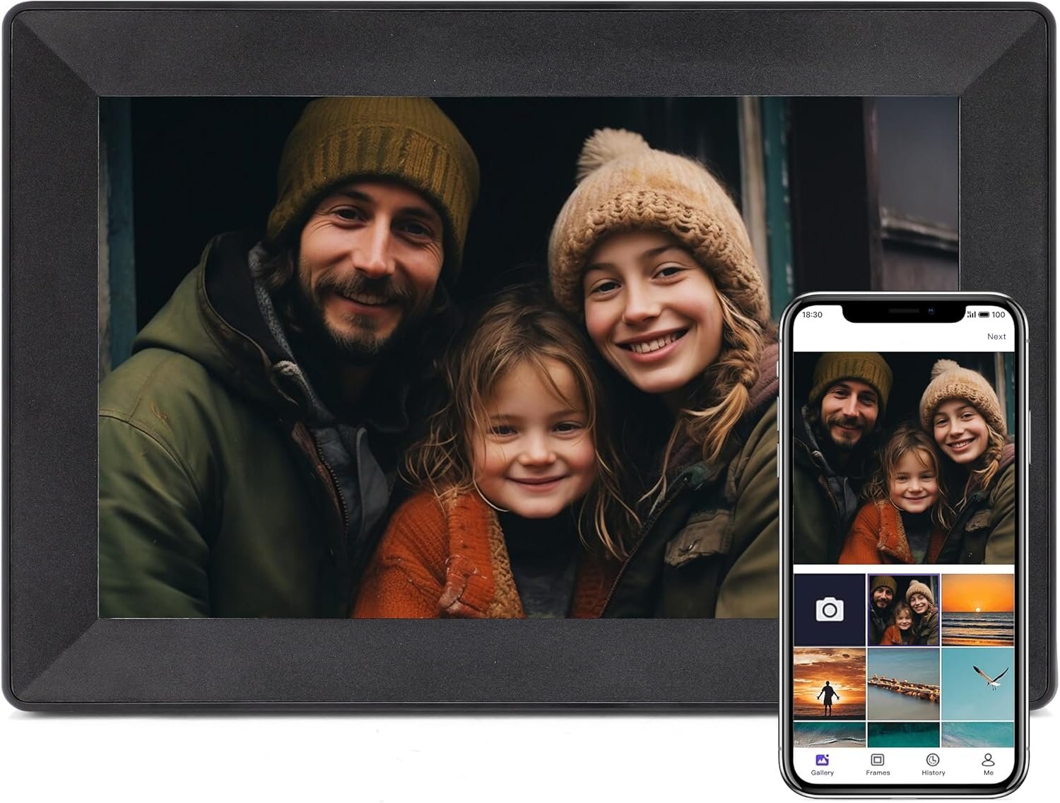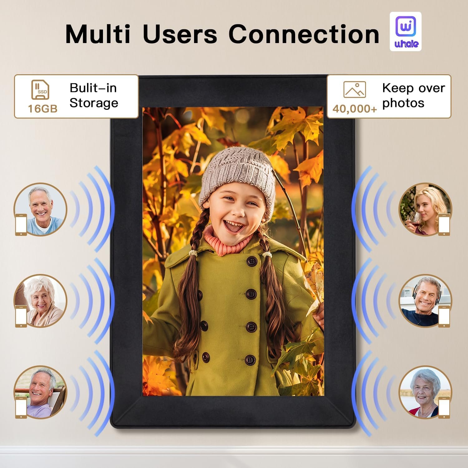 Large Memory:16GB memory card, can store about 40,000 photos (300KB/photo), also supports external memory card export or import photosHigh Definition:Photo frames are equipped with a 10.1-inch large touch screen, which provides clear image display and simple operation.Multi-user connection:There is no limit to the number of people who can connect to the electronic picture frame. You can send your electronic picture frame connection code to your friends and ask them to download the “Uhale” App and enter the connection code to connect.