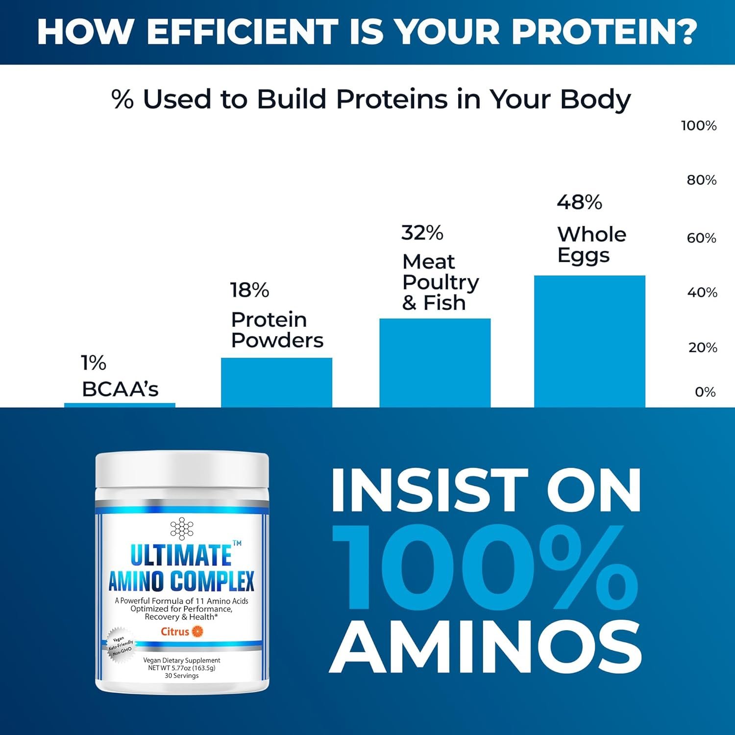 SUPPORTS ENERGY & FOCUS! Our essential amino acid supplement is designed to supercharge your energy levels and sharpen your focus*. Ultimate amino complex provides the essential building blocks your body needs for sustained energy and mental clarity. Click “Add to Cart” Now!