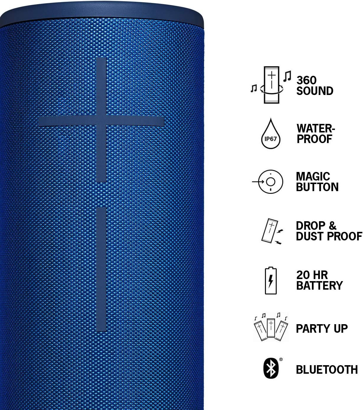 SUPER PORTABLE, WATERPROOF & VIRTUALLY INDESTRUCTIBLE: Ultimate Ears MEGABOOM 3 is seriously waterproof and floats. MEGABOOM 3 was born to get wet and is completely waterproof with a IP67 water and dustproof rating, which means it and can be totally submerged in water up to 1m for 30 minutes. No matter how wild things get, your music will always be on point.