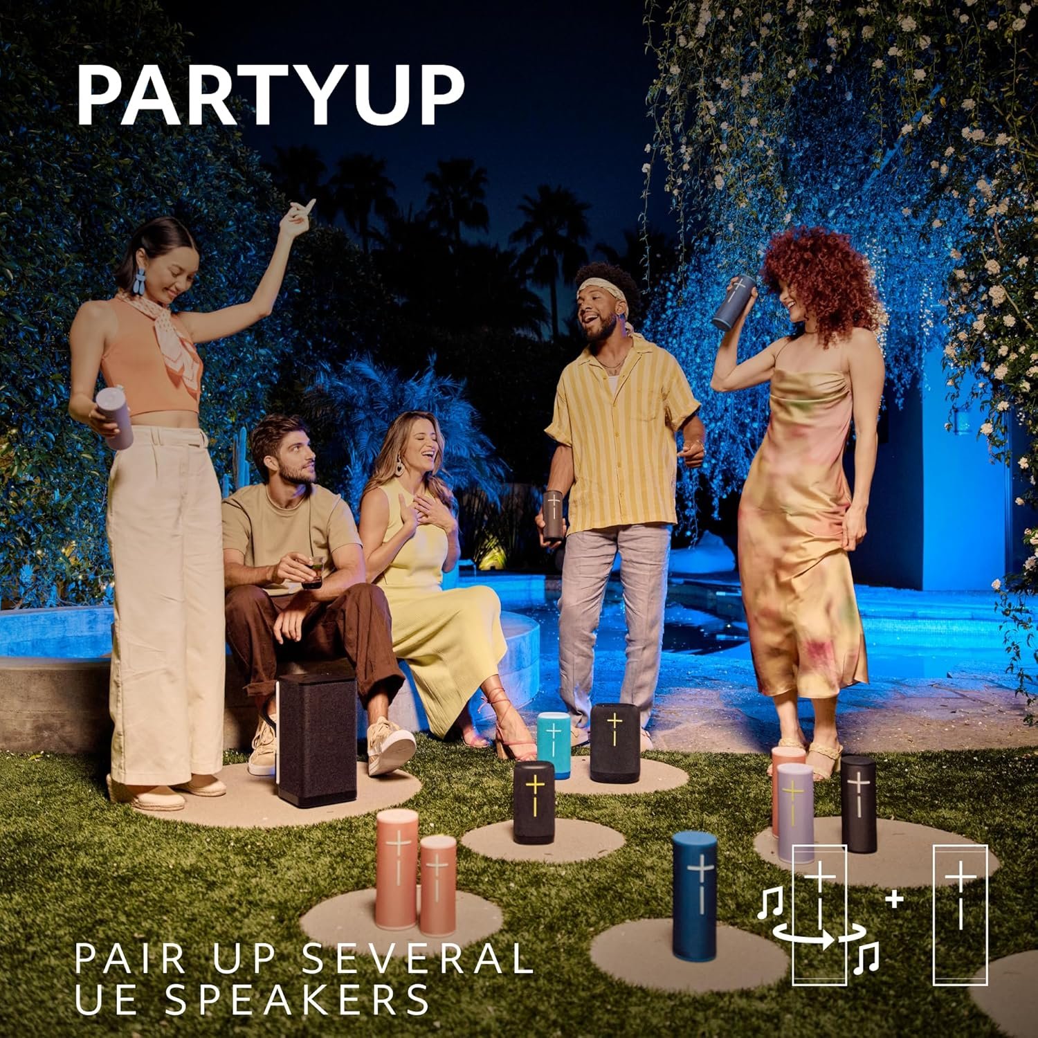PartyUp: Use PartyUp on the Ultimate Ears BOOM app to pair several BOOM, MEGABOOM, EVERBOOM, EPICBOOM, and HYPERBOOM portable Bluetooth speakers, creating the ultimate surround sound experience