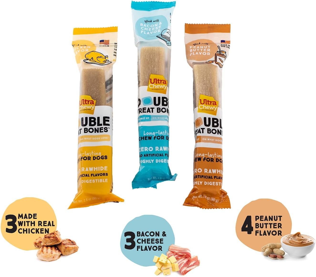 Long-lasting 2-in-1 Chew – Ultra Chewy Double Treat Bones are designed to last, providing your dog with a long-lasting outer layer and a chewy flavorful center for hours of chewing fun. This not only keeps your furry friend occupied, but also provides a healthy and delicious treat.