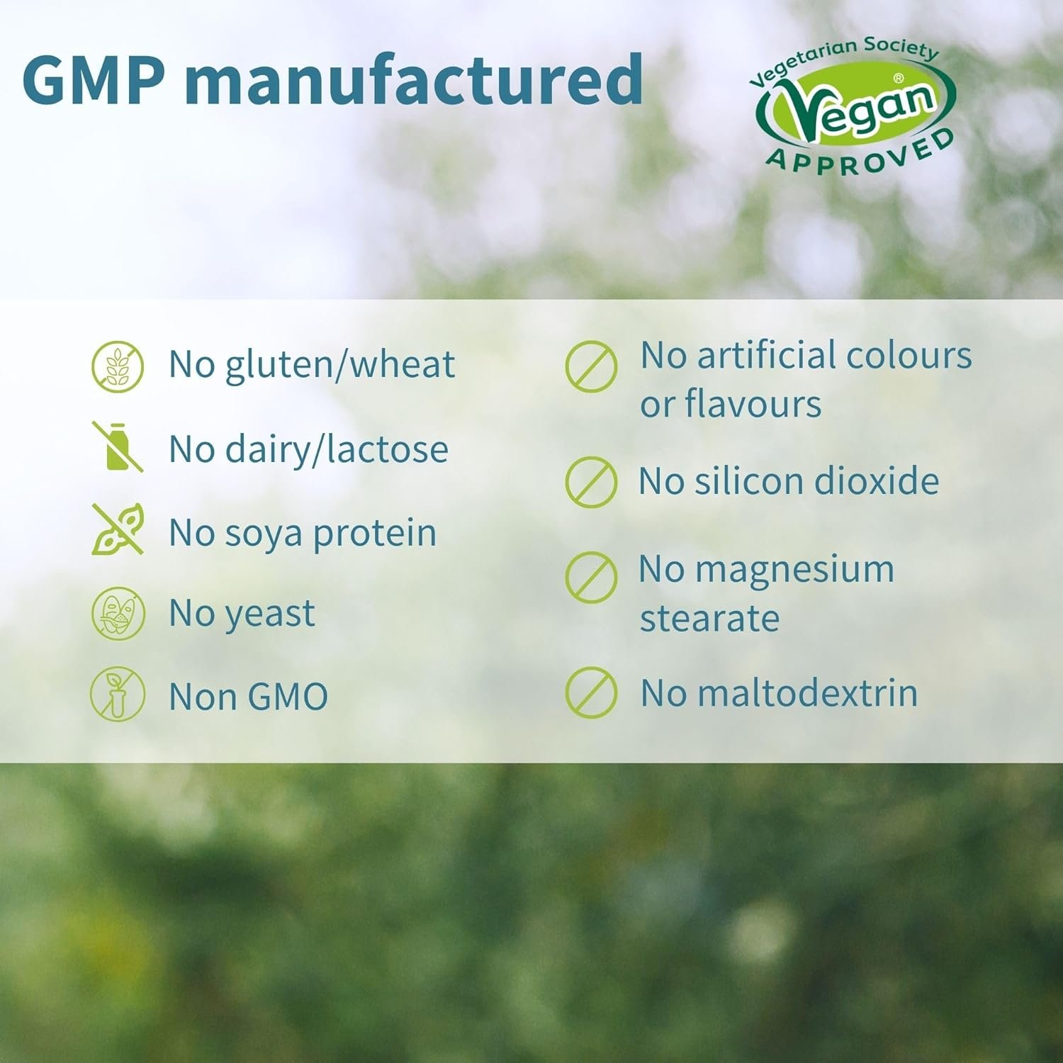 CLEAN LABEL: UK GMP manufactured; hypoallergenic ingredients; non-GMO; no magnesium stearate or silicon dioxide; certified vegan; 90 servings