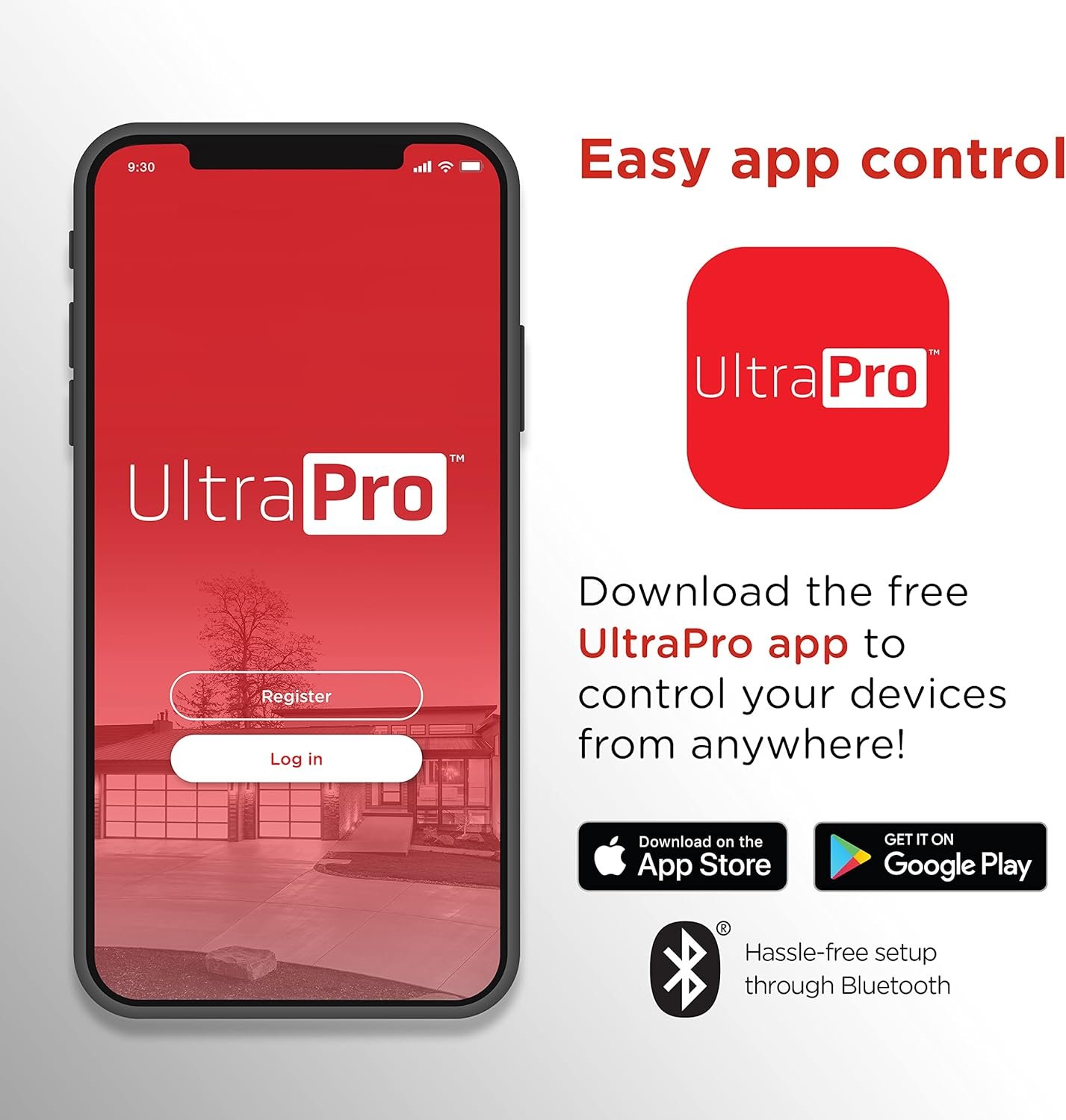 Easy-to-Use App – Versatile UltraPro app available on the Apple App Store and on Google Play simplifies network connection and is Amazon Alexa and Google Home compatible without requiring a hub