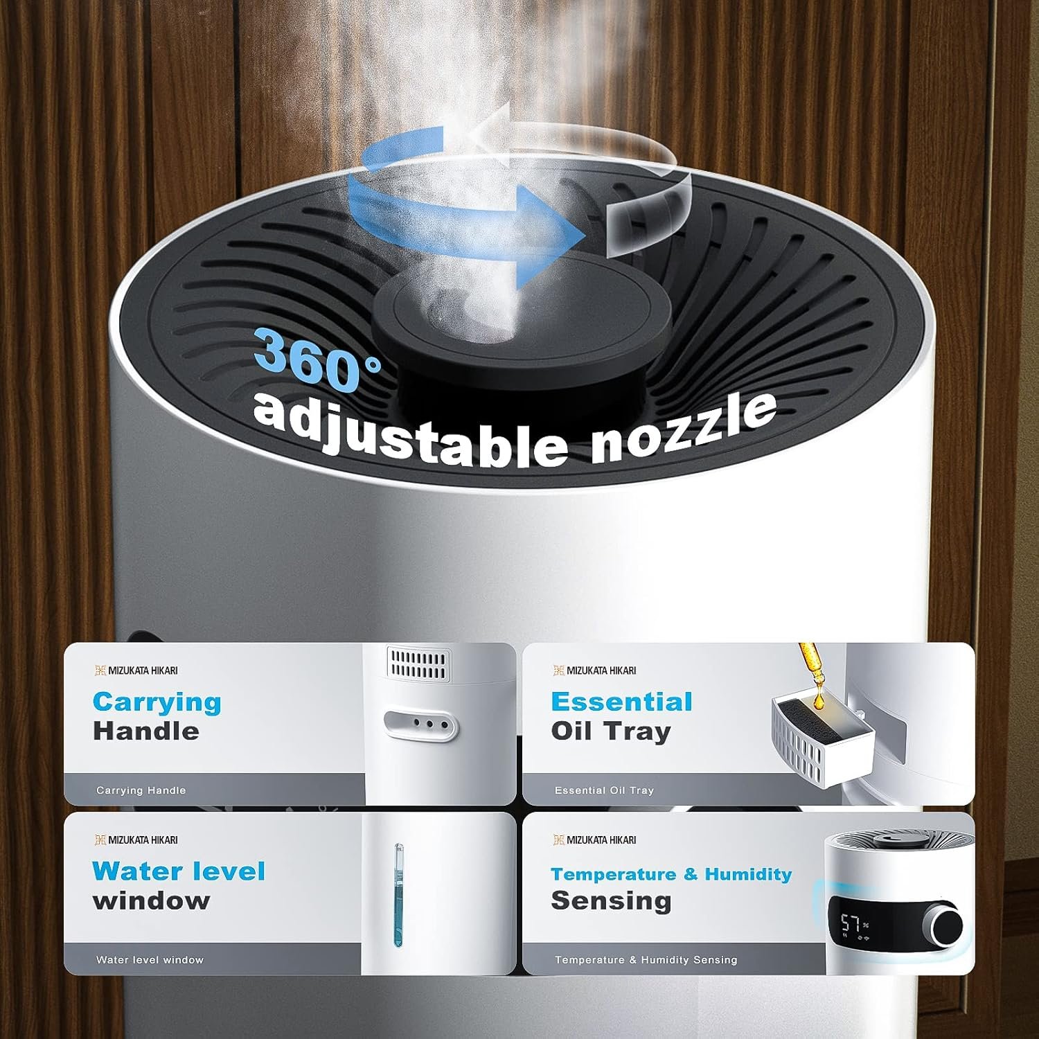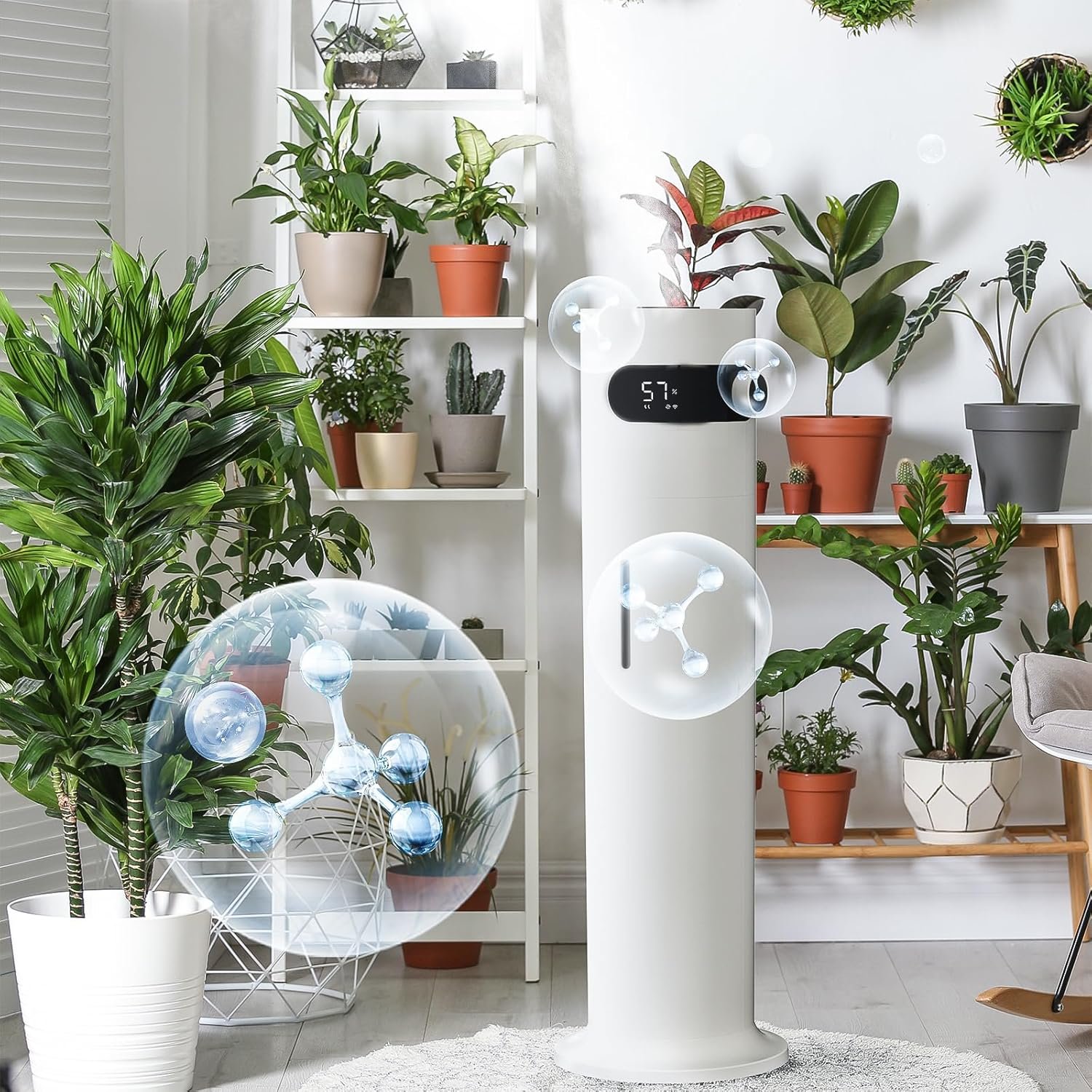 The sensors sense changes in temperature and humidity of the environment in real-time. The digital display allows you to see all key information such as temperature (Fahrenheit) and relative humidity (% RH), spray pattern, and timer. Water shortage and anti-burning automatic shutdown function, protect the safety of your home appliances use. It delivers cool fine mist and abundant negative oxygen ions into the air, reducing dust and static electricity and creating a quiet and comfortable living environment for you.