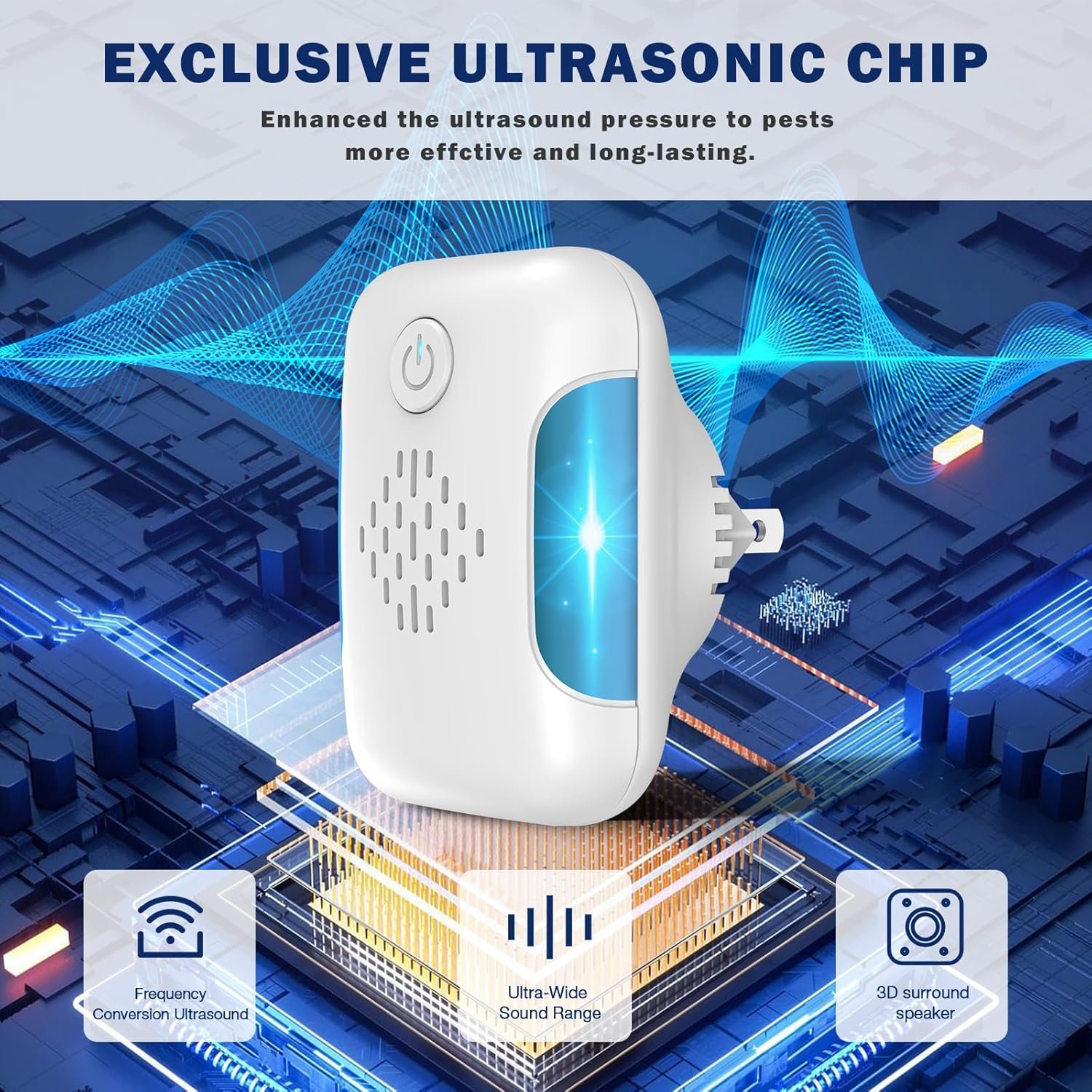 2023 Upgraded Ultrasonic Pest Repellent: Stimulate the nervous system of pests with 60 segments/second of changing ultrasonic waves, making them extremely uncomfortable and unable to adapt. Combined with an ultra-wide frequency range, repelling more type of pests and rodants effectively