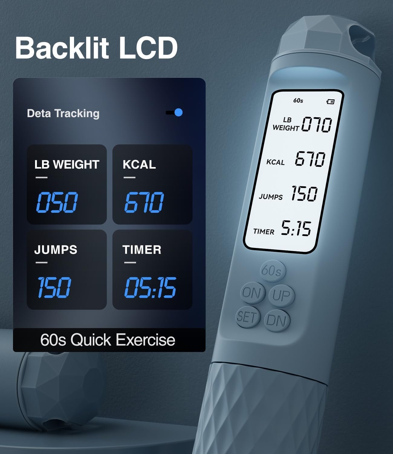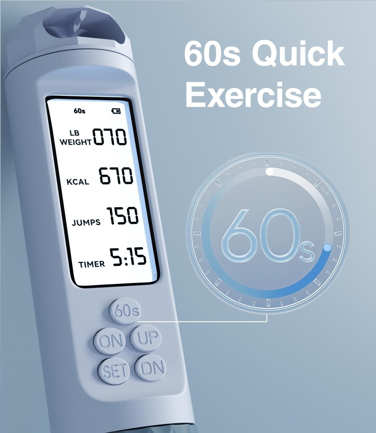 𝟔𝟎-𝐒𝐞𝐜𝐨𝐧𝐝 𝐐𝐮𝐢𝐜𝐤 𝐒𝐭𝐚𝐫𝐭: Begin your workout instantly with the Quick 60s Test feature and backlit LCD screen that displays weight, calories, laps, and time