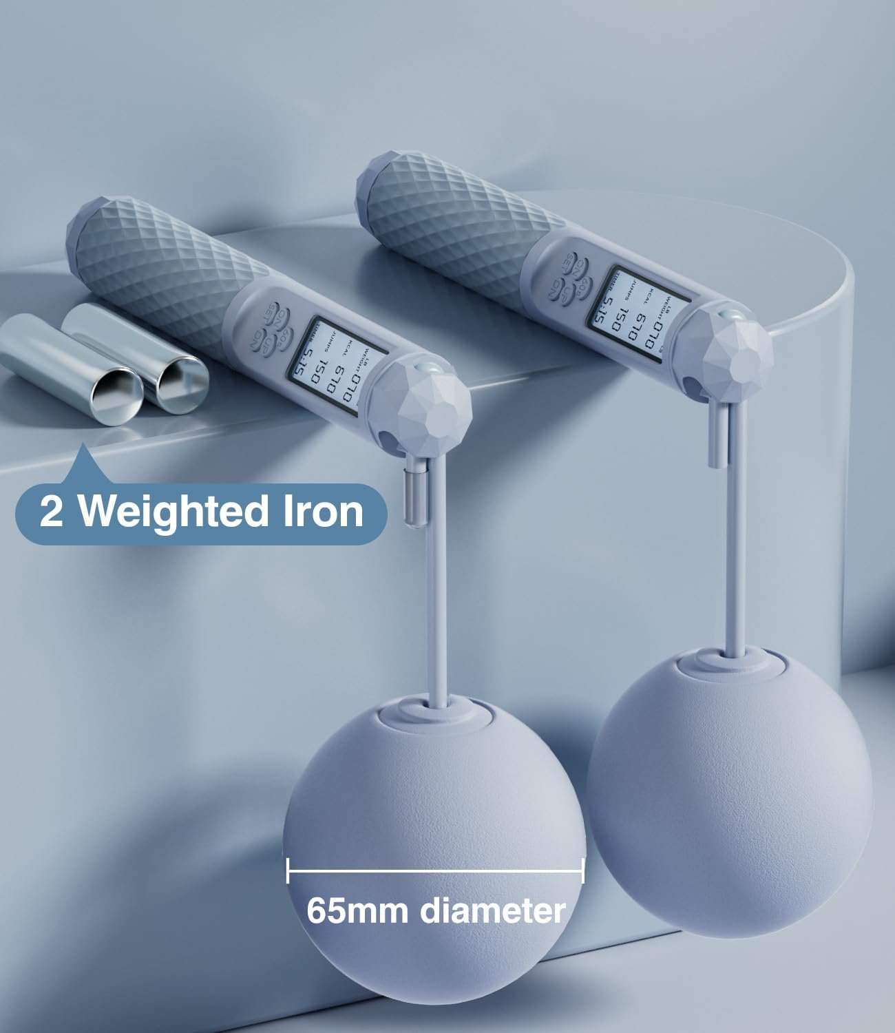 UMAY Fitness Quiet Smart Ropeless Jump Rope – 3 in 1 Set, Counting Feature, 118” Tangle-Free Steel Cable, Weighted Iron