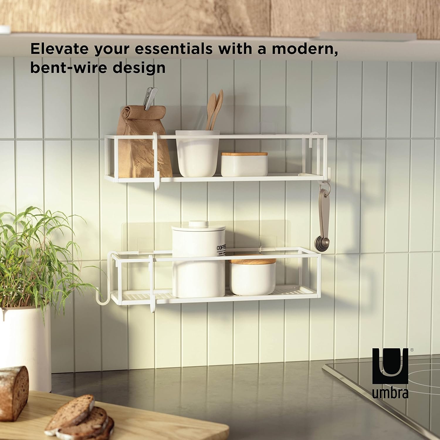 Add elevated storage to your bath or shower space with Cubiko Shower Bins. These non-damaging shower storage caddies have a modern, bent wire design, making them easy to integrate with a variety of decor styles. Easy to install, Cubiko includes non-damaging, waterproof adhesive strips that can be applied on various surfaces such as tiles, dry wall, concrete, etc. (does not work on porous surfaces). Each bin holds 10lbs (4.5 kg) and is made of rust-free metal. Includes two metal hooks to hold loofahs, small towels, and more.