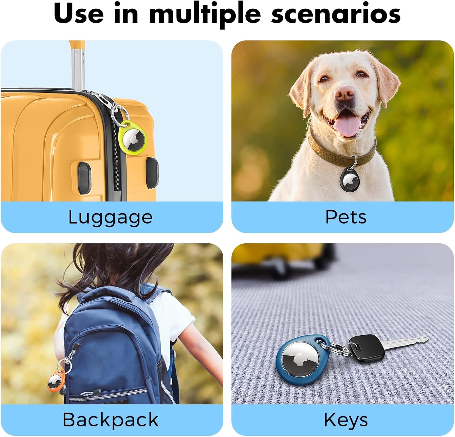 Perfect Fit: This 4-pack Airtag holder is exclusively specially designed for the Apple AirTag. (Note: Airtag is not included) The case fits tightly around your AirTag to ensure that it stays put, so you can keep secure track of whatever it’s attached to