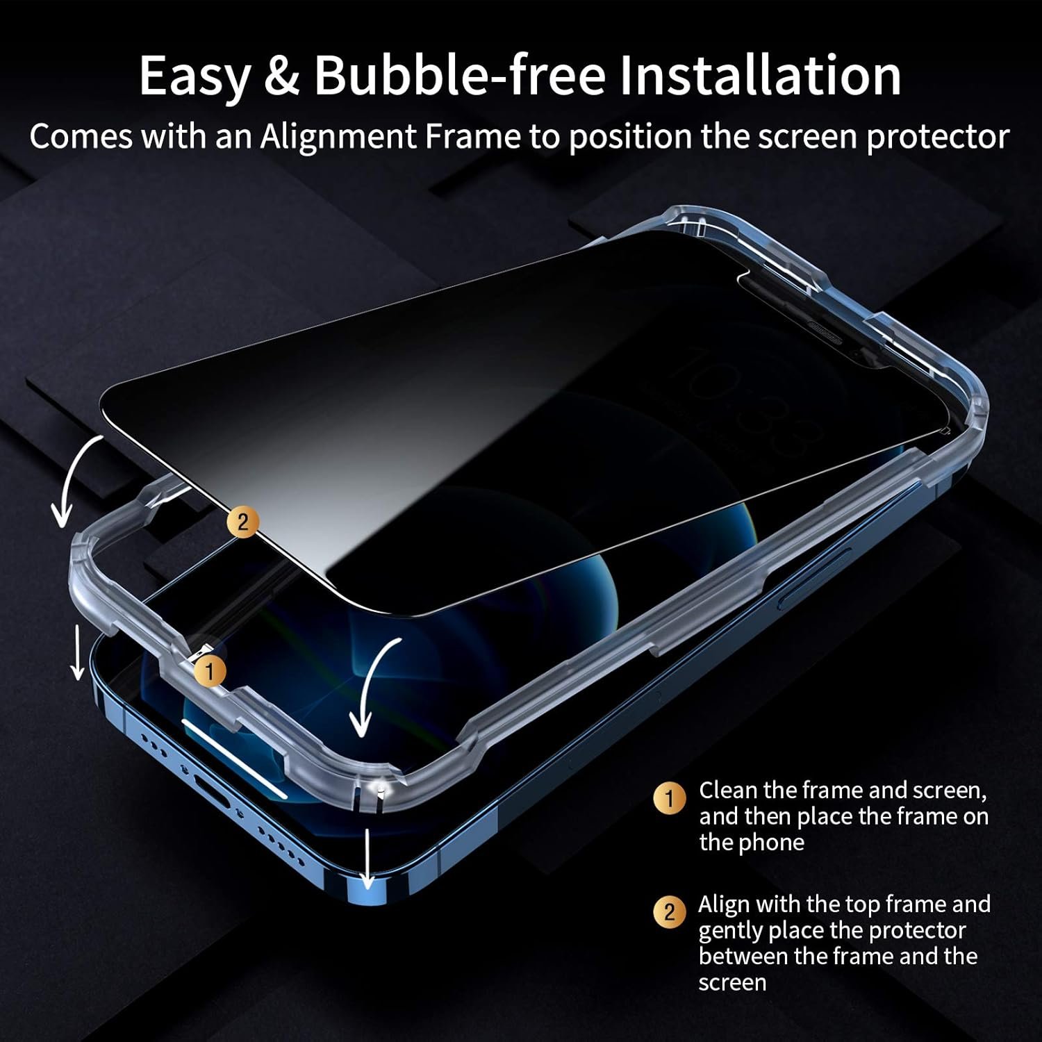 Q1: What is the specialty of this screen protector compared with much cheaper ones?A1: Crafted with the ultra-clear and ultra-thin high-alumina glass from South Glass, achieving the pinnacle of hardness at 9H, it’s tougher and performs better than standard tempered film—one sheet equals the strength of three. The included alignment frame makes installation a breeze, and with our state-of-the-art automatic exhaust technology, bubble worries are a thing of the past. Most importantly, we use the most advanced anti-spy screen technology to bring you true 28° anti-spy protection, never worry about your privacy leak again.Q2: Do screen protectors affect display quality?A2: Our iPhone 12/ iPhone 12 Pro screen protectors have all been designed to give you the same pristine screen quality you get from a newly unboxed smartphone. The screen protectors are practically invisible and keep your screen protected from likely scrapes, scratches, knocks, and drops.Q3: Do the privacy glass screen protectors hurt my eyes?A3: You will be relieved to find out that the anti-glare in privacy filters also have antistatic and anti-radiation properties, making them a safe bet for any screen. Thanks to this anti-glare screen feature, you do not need to worry about any kind of external light source damaging your eyes.