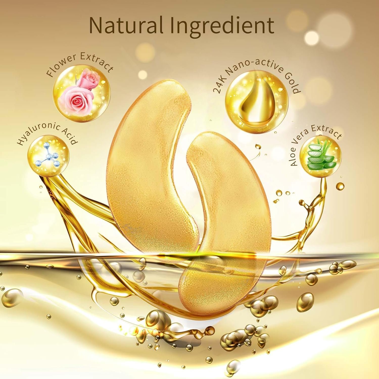 【Natural Ingredients】: Our under eye patches for eyes use with natural ingredients, the 4 different types eye mask main ingredients including Aqua, Glycerin, Collagen, Niacinamide, 24K Gold, Hyaluronic Acid, Rose Extract and Aloe Vera extract, help deeply repair the eye skin, help soothe the skin around the eyes, tighten your eye skin, remains hydrated and vibrant. The under eye patches through clinically tested by our researcher, continuous use can effectively reduces the appearance of dark circles and puffiness.