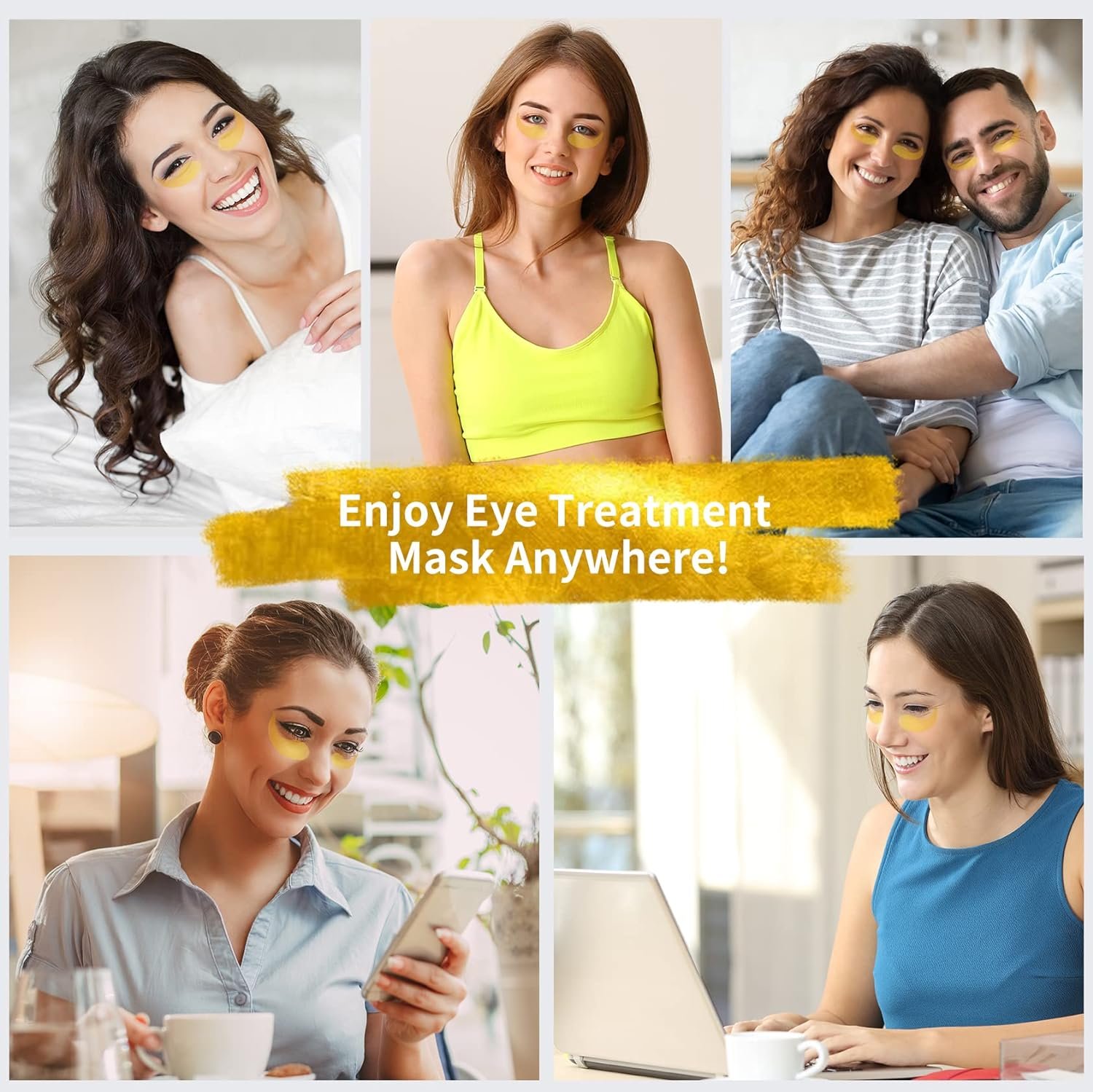 💖💖【Safe & Effective Formula】: Infused with a blend of collagen,castor oil, 24k gold, glycerin and multiple forms of hyaluronic acid which can quickly penetrate into the basal layer, deeply repair the eye skin and promote blood circulation,100% safe without any side effects. Our eye masks for dark circles and puffiness are formulated to be gentle yet effective on all skin types