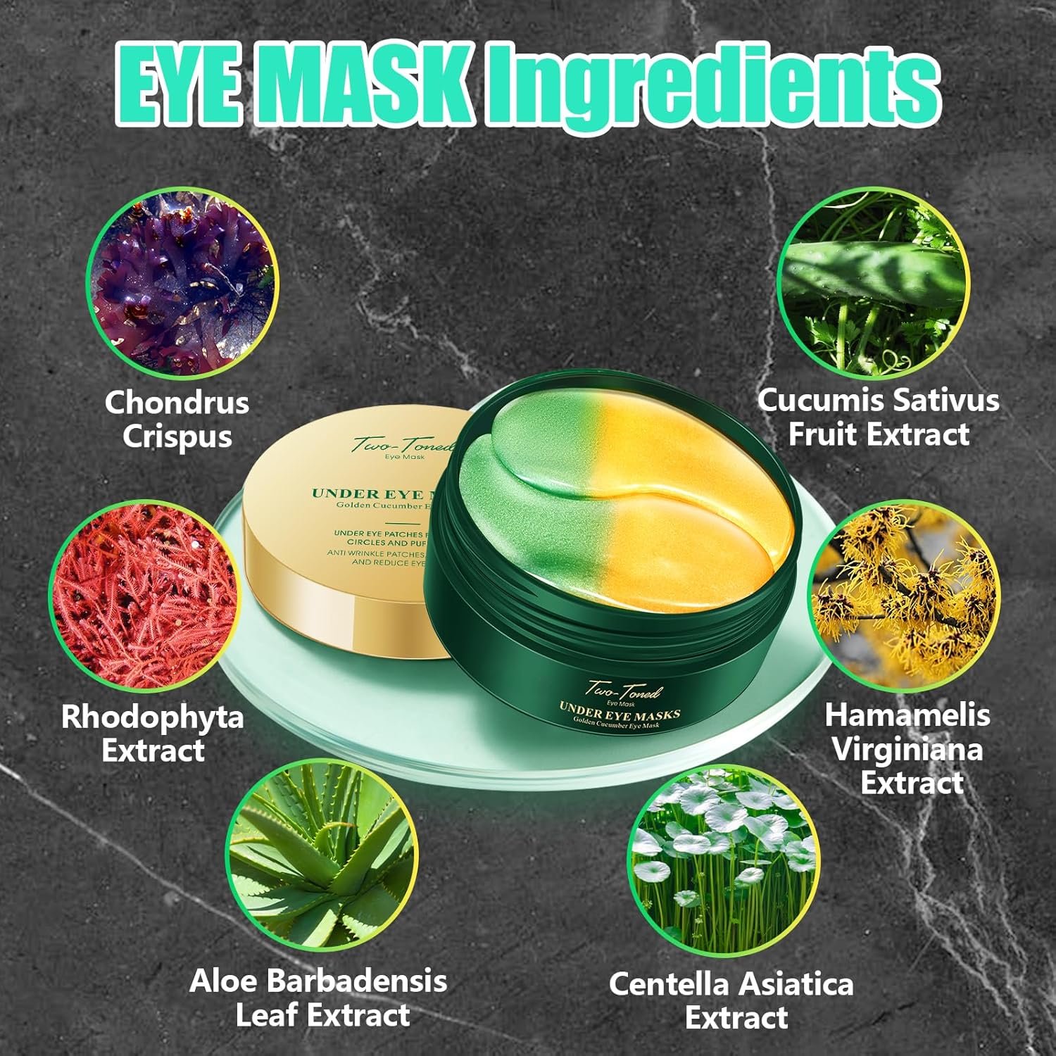 Under-Eye Care: These golden cucumber eye mask are an effective skincare product that combats aging, smooths wrinkles and fine lines, reduces dark circles and puffiness, and accelerates cell and collagen regeneration