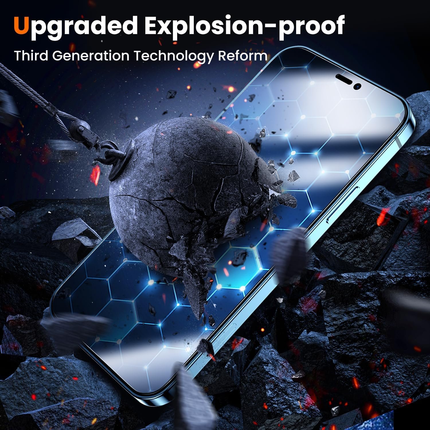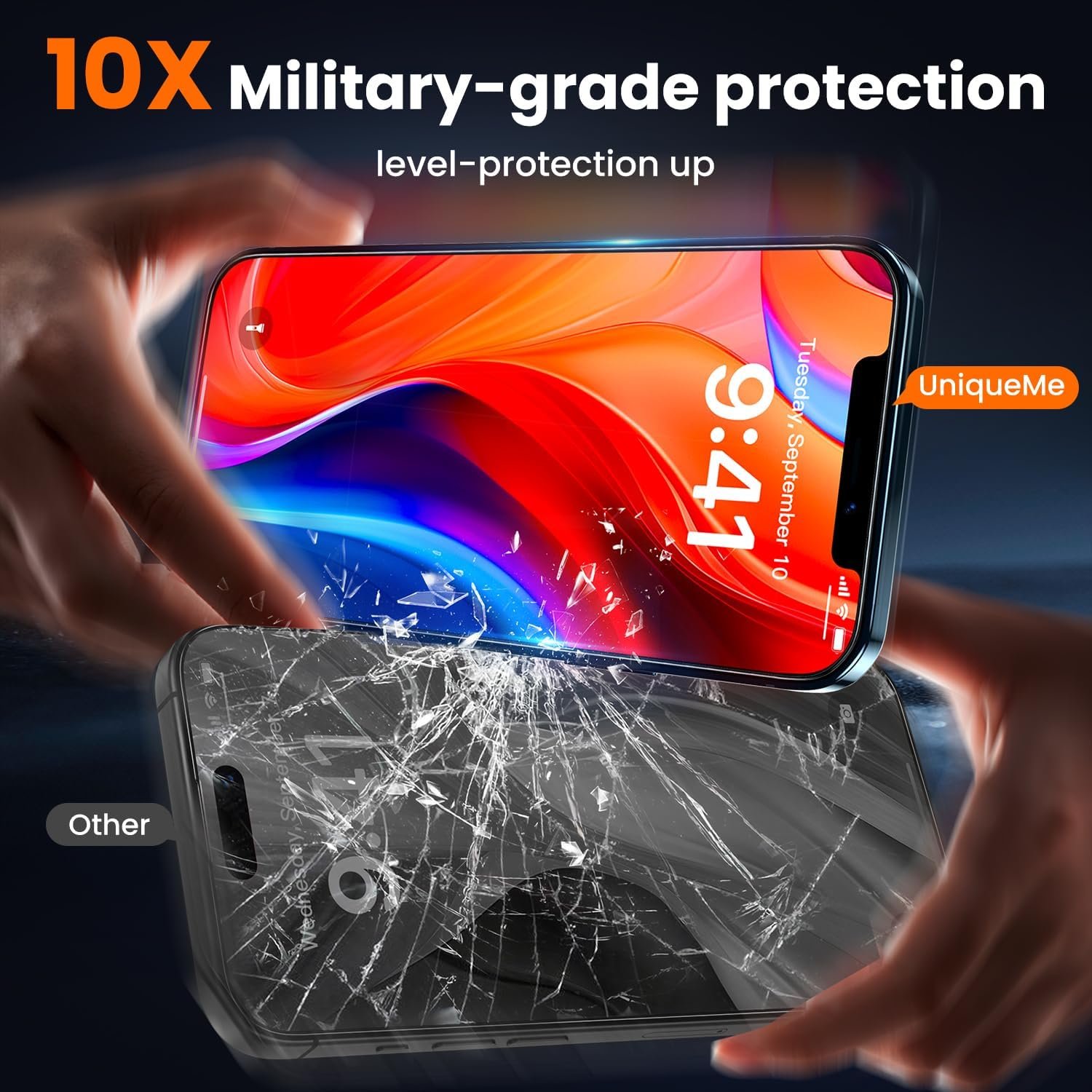 【Industry NO.1 Military-Grade Shatterproof】Authorized by International Military Standard with 12 rigorous engineering tests of 220lbs impact, 8ft drops, 10,000+ scratch tests, its strength, toughness and durability perform NO.1 among all glass.