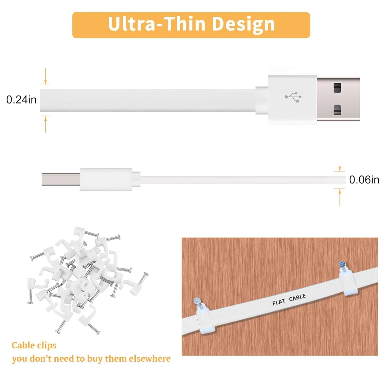 【Flat Cable】 With a thickness of only 2 mm, this cable is designed to prevent tangling and save space. The flat power cord is highly flexible, allowing it to effortlessly slide through doorways, window gaps, under carpets, and behind furniture, providing a sleek and organized look to home or office wiring.