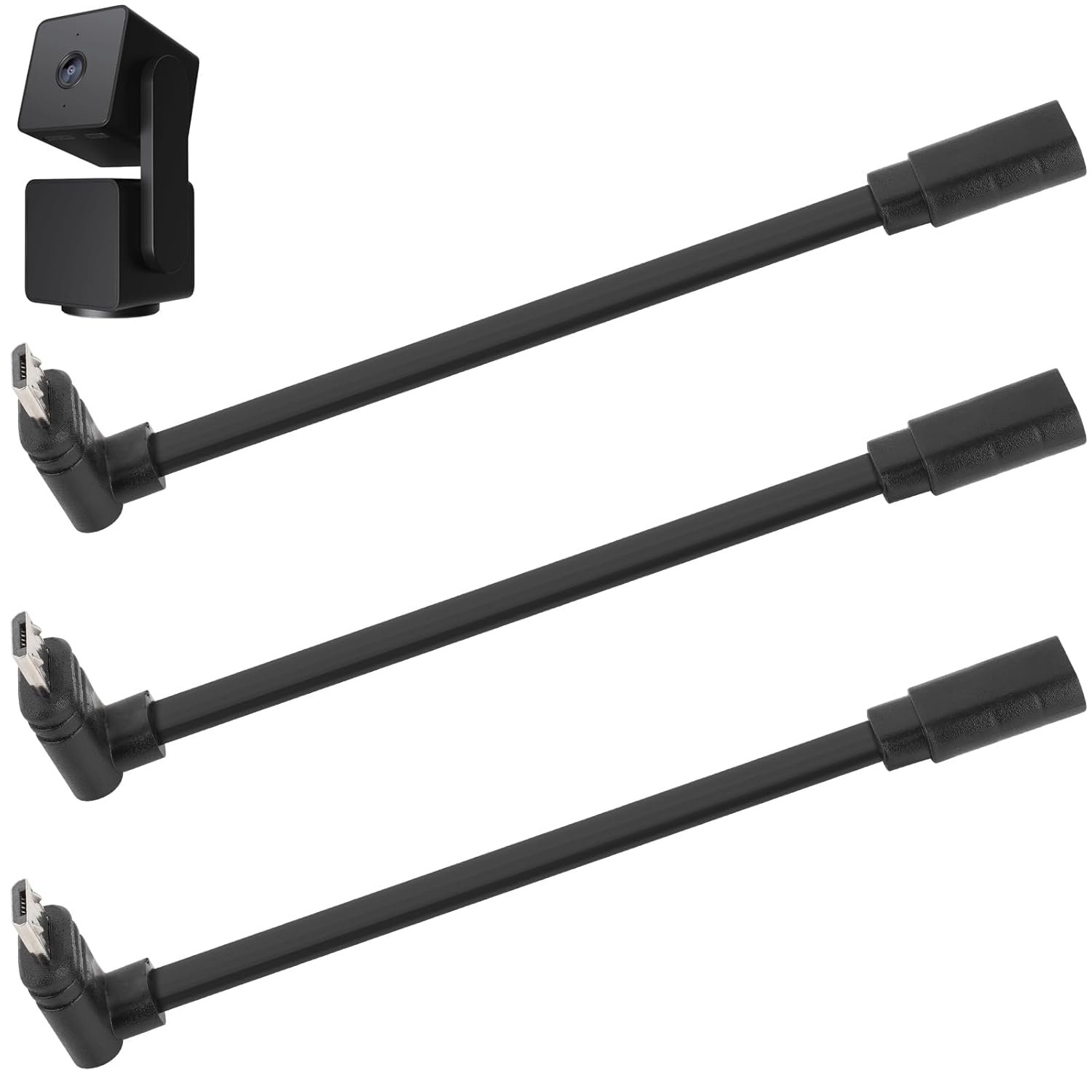 Uogw 3 Pack Extension Cable Compatible with Wyze Cam Pan v3 and Wyze Cam v3 Pro, 5inch Male to Female Extender Cord for WYZE Cam,Micro USB 90 Degree Power Adapter,L-Shaped Flat Cable(Black)