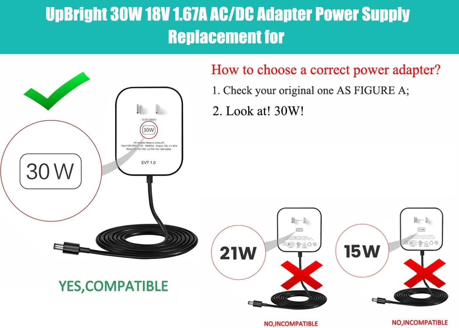 UpBright New Global 18V AC / DC Adapter Compatible with Amazon Echo (3rd Gen), Echo Plus (2nd Gen), Echo Show (2nd gen) 18VDC 1.67A 30 W DC18V 1670mA 30W 18.0V 1.67 A 18 V 18 VDC Switching Power Supply Cord Cable PS Battery Charger Mains PSU