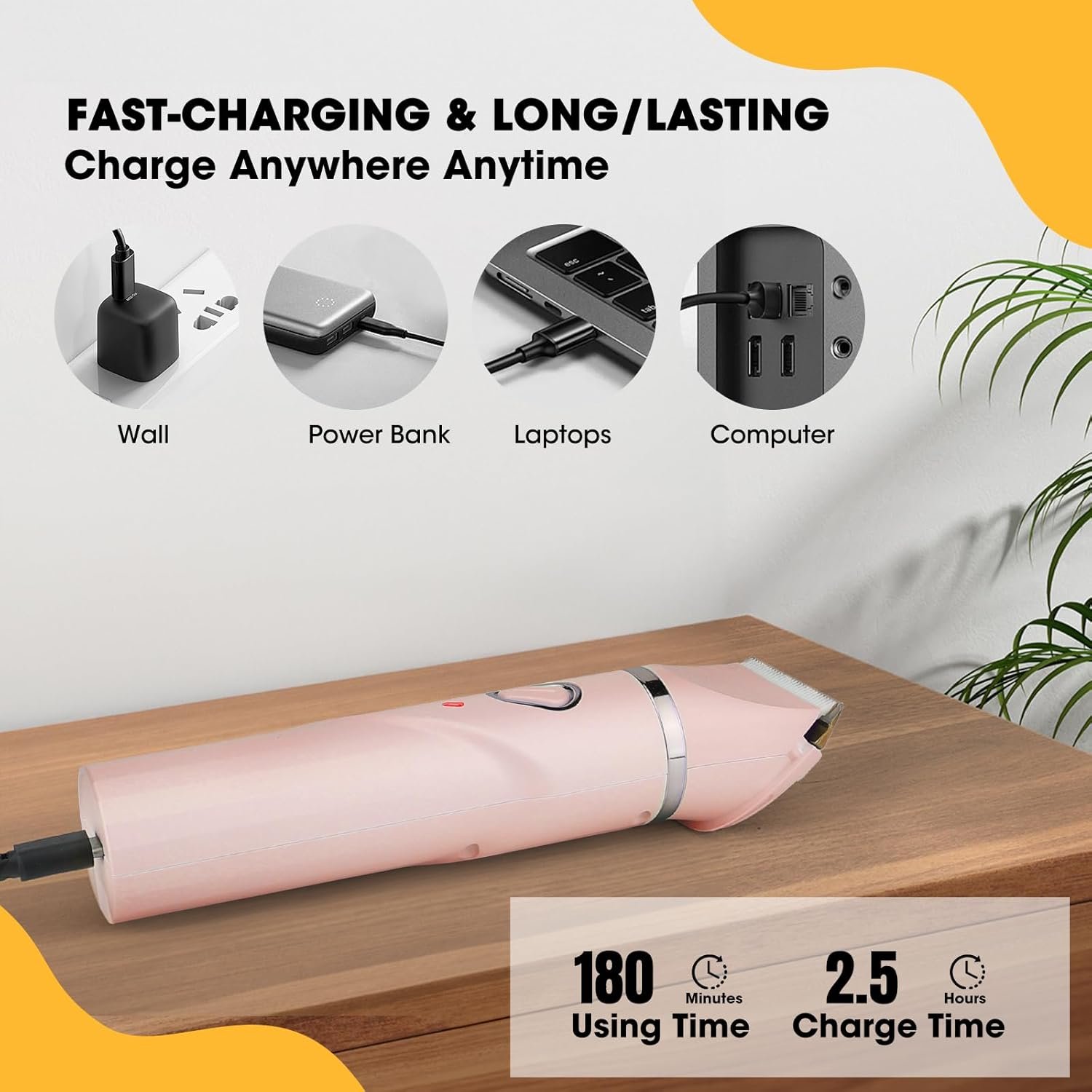 CONVENICE CHARGE – The trimmer kit has a built-in battery, provides a USB charging cable which can be charged through the mobile phone adapter, computer, mobile power supply, etc. The product has an indicator light, after fully charged (about 2.5 hours)can be used continuously for 180 minutes, you can trimming your pet anytime, anywhere, making your pets love grooming