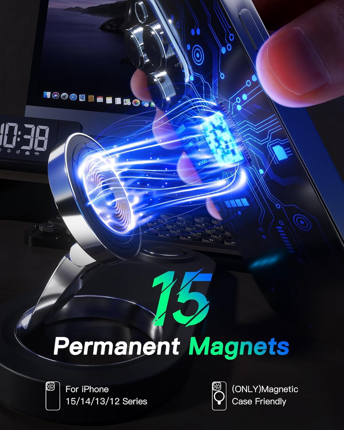 With a significantly reduced recharge time, this mag safe charger stand ensures you have more time to enjoy your Apple devices. The charger station base is equipped with intelligent protection technology, including temperature control, overvoltage protection, short circuit protection, and overcurrent protection. It will automatically use trickle charging when it is almost fully charged or when the temperature is too high. You can enjoy fast charging without worrying about any potential risks to your devices.
