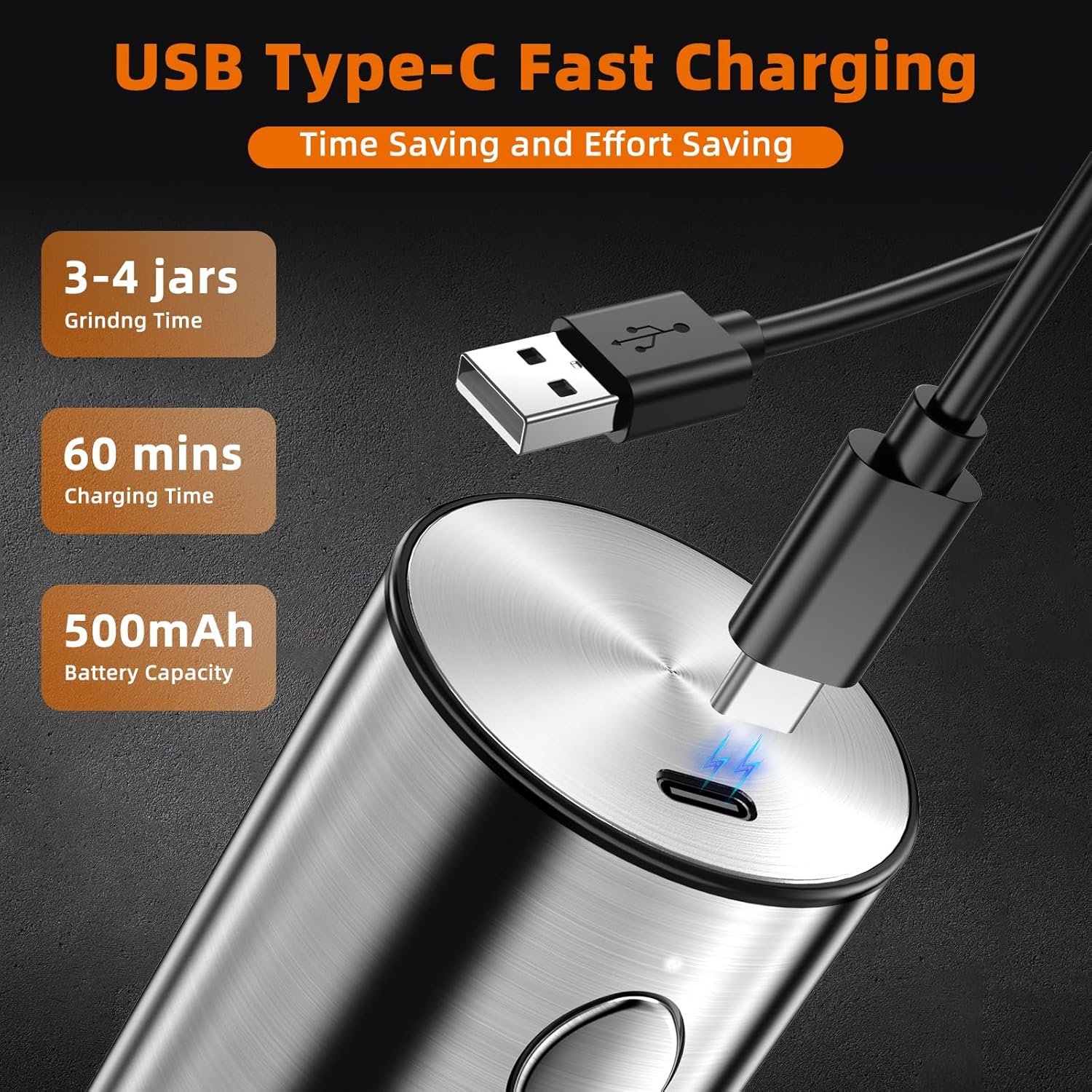 Rechargeable Salt and Pepper Grinder Set: Comes with a Type-C charging cable for quick charging, grinding at least 60g of spices after fully charged. Fitted with charging indicator, it’ll easily let you know when to go charging for the grinders.