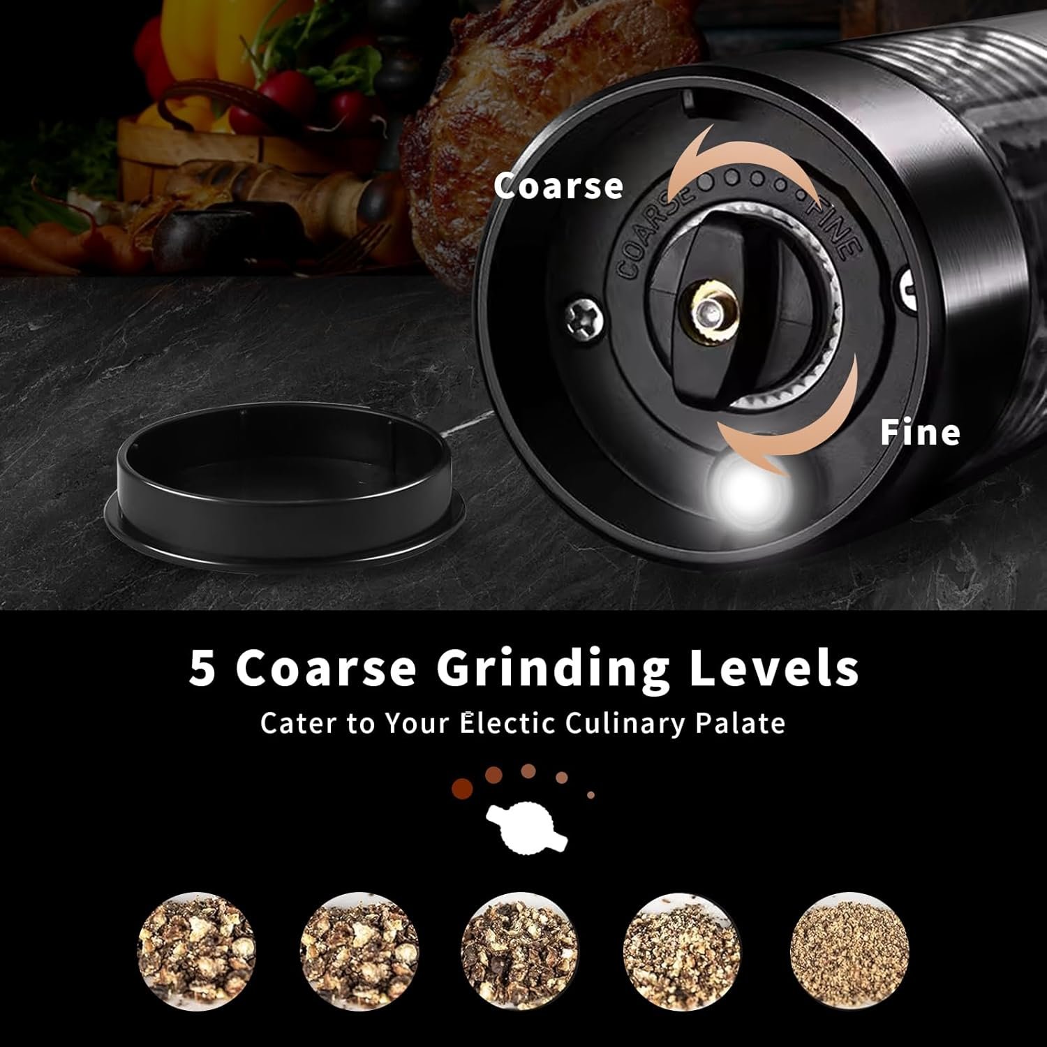Featuring a high-hardness ceramic grinder, the automatic salt and pepper grinder set ensures optimal flavor retention and releases intense aromas with every grind. Choose from 5 different coarseness levels to achieve the perfect consistency for your dishes.