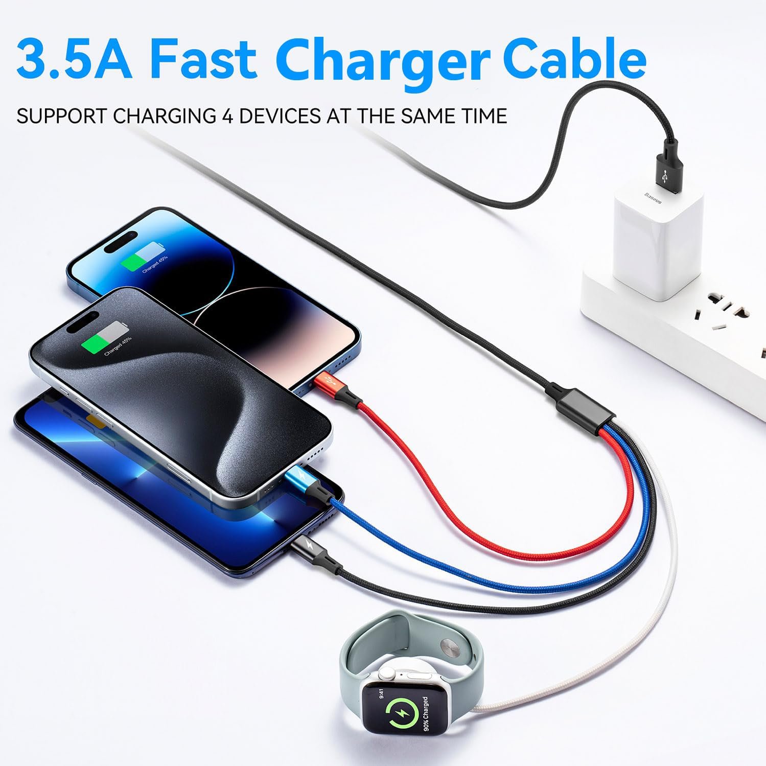 ⚡【Universal Compatibility】: Multi charger cable is compatible with iWatch Series Ultra/ 9/ 8/ 7/ 6/ SE/ 5/ 4/ 3/ 2/ 1/ Nike+, iPhone 16 15 14 Plus/ 16 15 14 13 12 11 Pro Max/ 16 15 14 13 12 11 Pro/ 16 15 14 13 12 11/ Mini/ XS/ XR/ X/ 8/ 7/ 6, Samsung Galaxy Ultra/ S24+/ S24/ S23/ S23+/ S23/ S22/ S21/ S20/ S20+/ S20/ S10+/ S10 S9/ S9+/ S8/ S7, LG, Pixel, HTC, SONY, One Plus, Moto,TWS headphones and more.