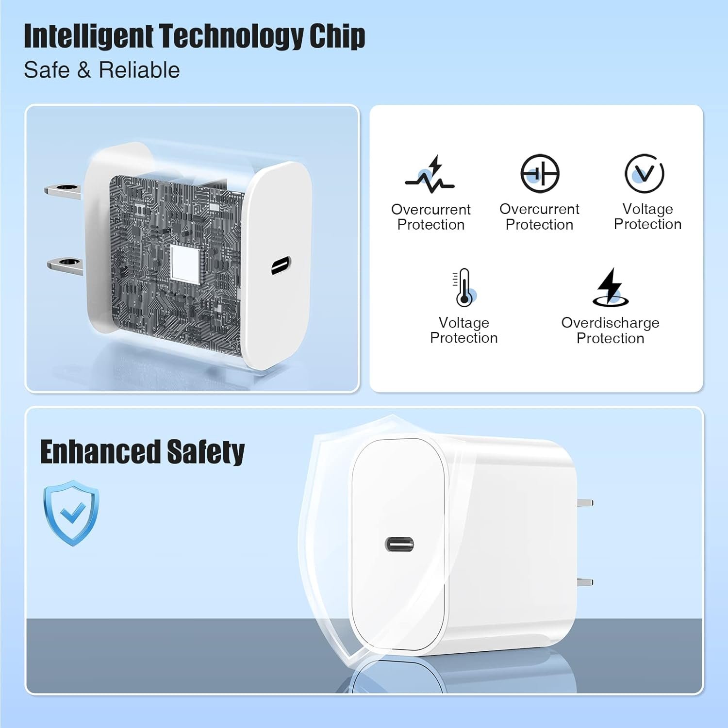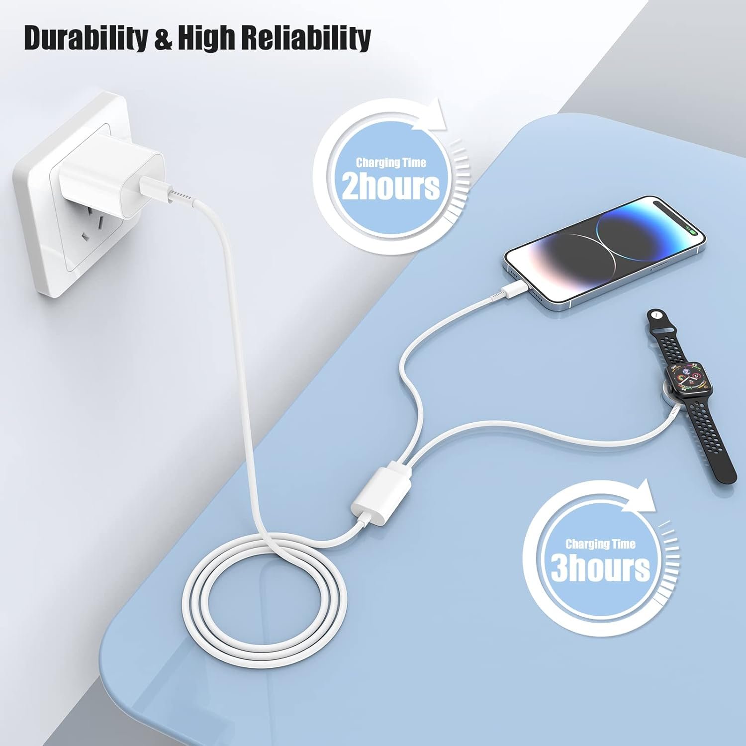 【365-Day Free Return and Exchange Service】 All Cables you purchase enjoy 365-day free return service and 24/7 customer service. If you encounter problems during use, please find us through Amazon in time! After purchase, you will get: 20W PD fast charging wall charger Brick+ 2 in 1 charger cable for Apple iWatch & iPhone Charger 2M/6ft.