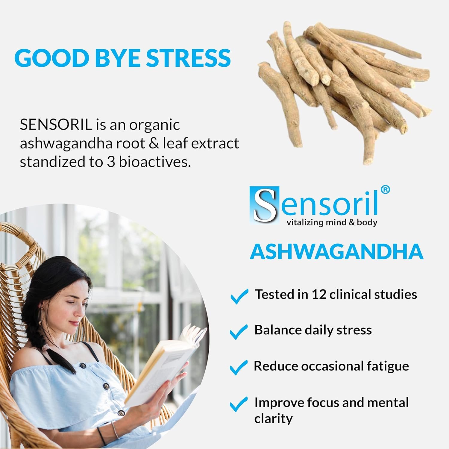 STAY ENERGIZED AND VITALIZED: Proven by 14 clinical studies, SENSORIL ashwagandha root & leaf extract provides long-lasting energy while decreasing fatigue. The synergy with adaptogenic herbs saffron, rhodiola rosea, holy basil and theanine promotes immune, memory, cognition, endurance and thyroid support