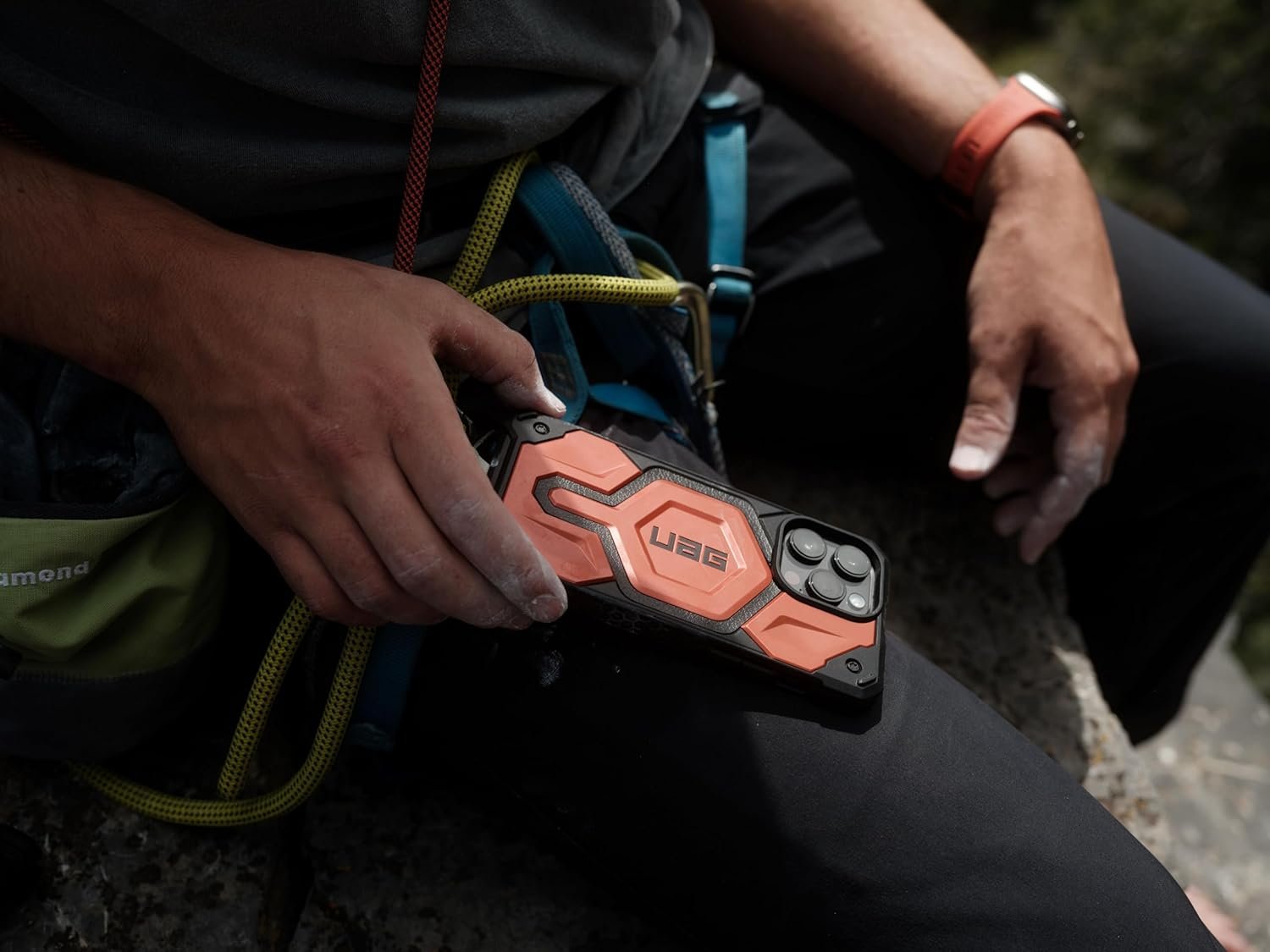 MULTI-LAYER PROTECTION: Our case is handcrafted with premium materials featuring a feather-light construction with 5 layers of protection starring UAG’s signature armor frame, shock-resistant core, layered with carbon fiber/top-grain leather, a polycarbonate shear plate, alloy metal hardware, and impact-resistant rubber surround.