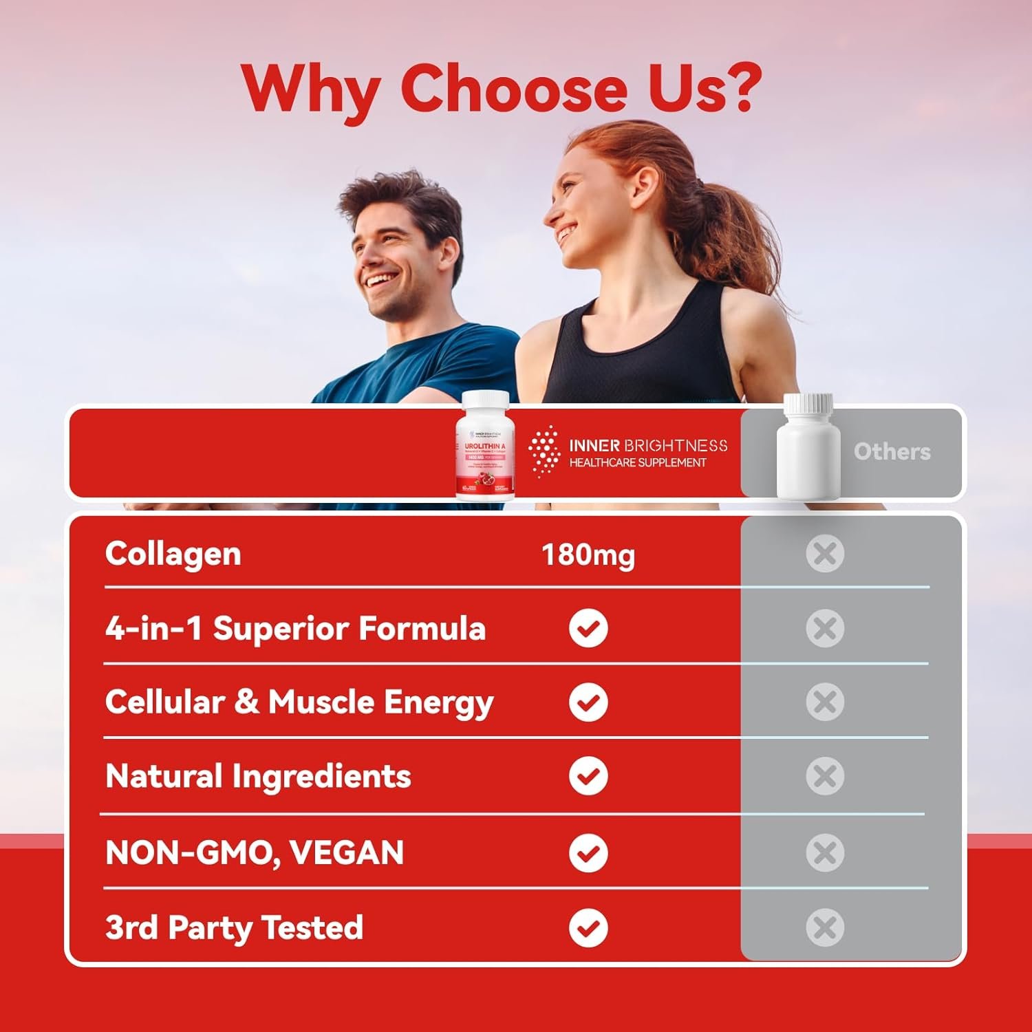 Healthy Aging & Beauty: Fight aging with our premium Urolithin A supplement! It enhances absorption, boosting cellular health and vitality. Collagen supports skin elasticity, reduces wrinkles, and helps you stay youthful.