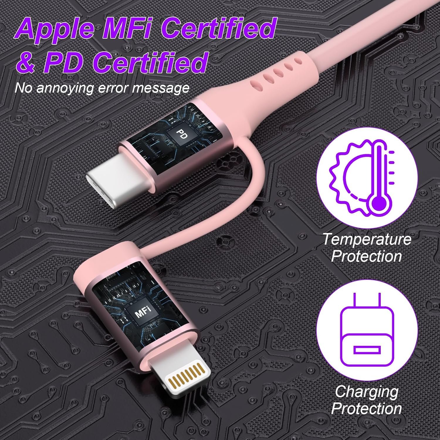 Universal Compatibility : This pink short iPhone car charger cord charges all devices with USB C and lightning connectors. Suitable for Samsung Galaxy, HP, Sony Xperia, Google Pixel, Surface phone, InFocus, Motorola, Dell, Purism, BLU, Palm, Android Smartphones, iPad, tablet, laptop, Macbook. iPhone 16/15/ 15 Pro/ 15 Pro Max,iPhone 14/ 14 pro/ 14 pro Max/ 14 Plus,/13/ 13 Pro/ 13 Pro Max/ 13 Mini, 12/ 12 Pro/ 12 Pro Max/ 12 Mini, 11/ 11 Pro/ 11 Pro Max, X/ XR 11 Pro Max, X/ XR/ XS/ XS Max, 8/ 8 Plus, SE, 7/ 6/ 5,ect