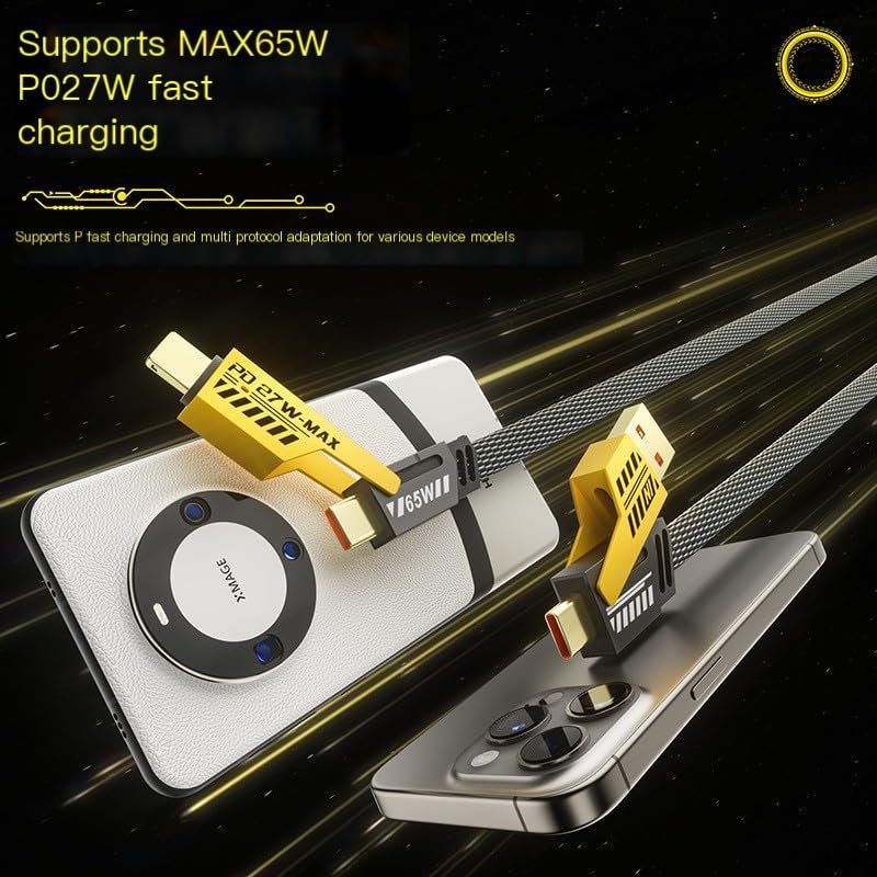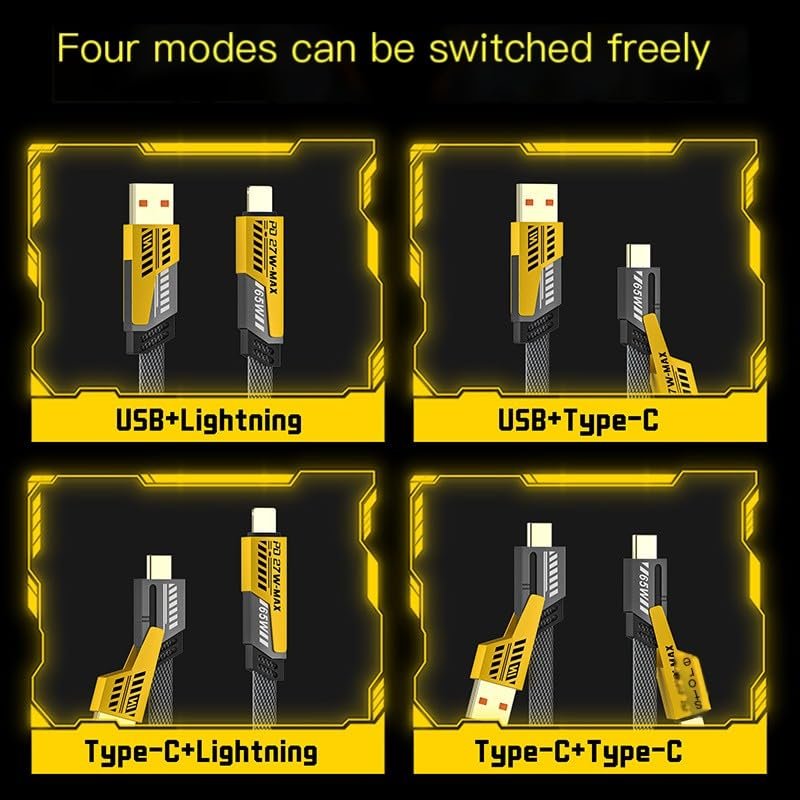 This 4 in 1 USB cable is a versatile and essential tool with maximum compatibility for today’s digital world. It is equipped with USB-A, USB-C, and Lightning connectors, making it a universal solution for power and data transmission, Compatible with MacBook, iPad, iPhone, Samsung, Computer. And 3ft braided flat cable make your life easier whether you are in office, home or travel.