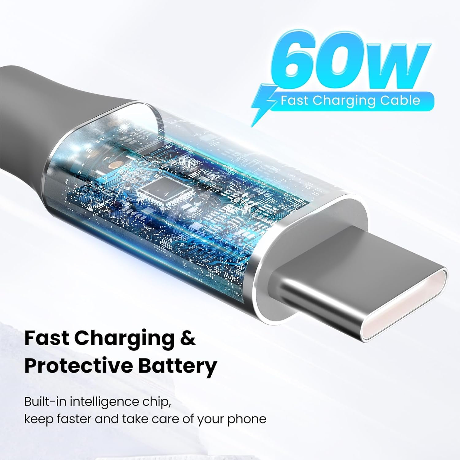 【Fast Charge & Data Transfer】: These usb-c charger cords support fast charging up to 60W (20V/3A) for efficient, which is ensured by high-speed safe charging & dual USB ports support data transfer speed up to 480Mbps