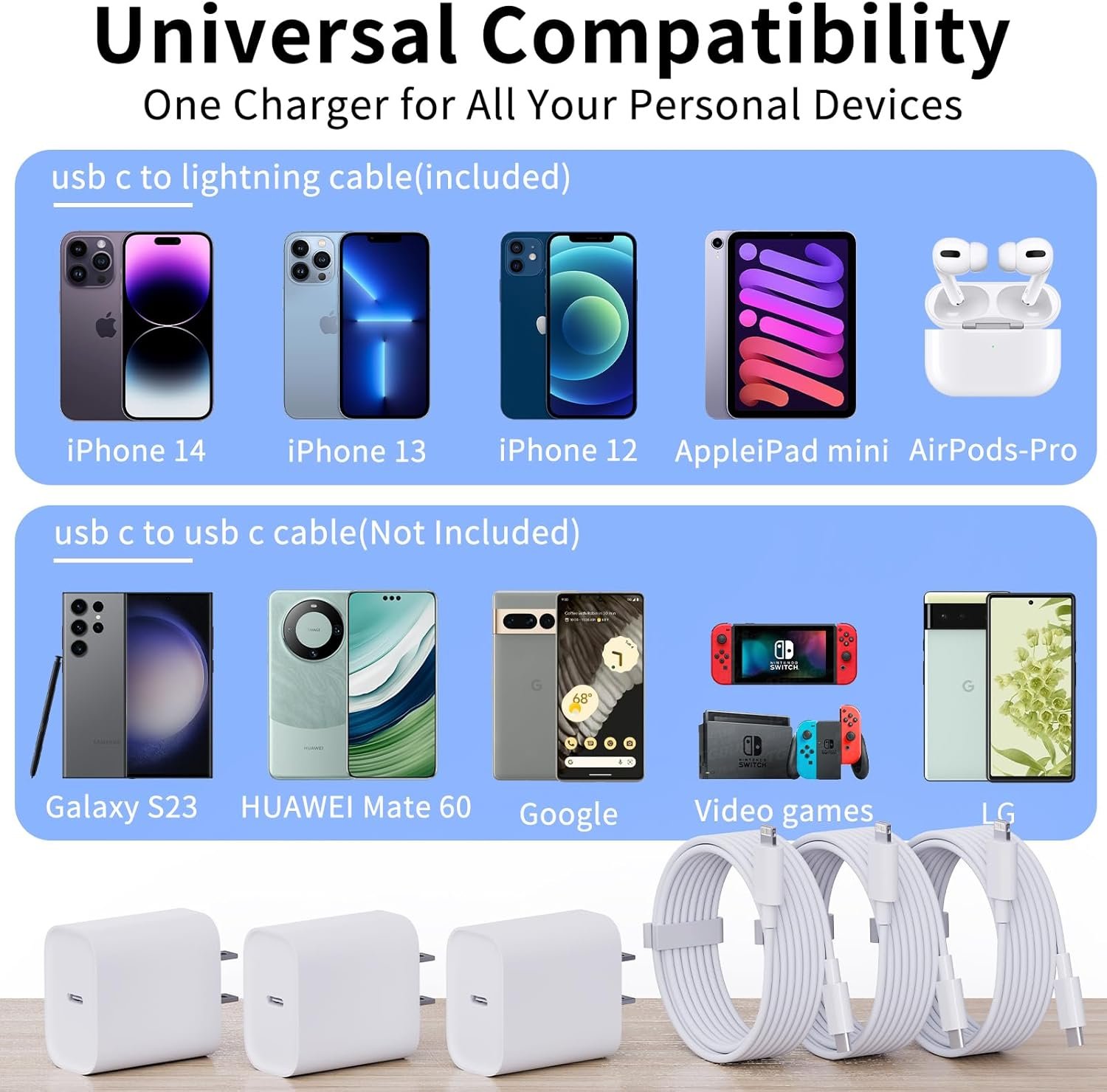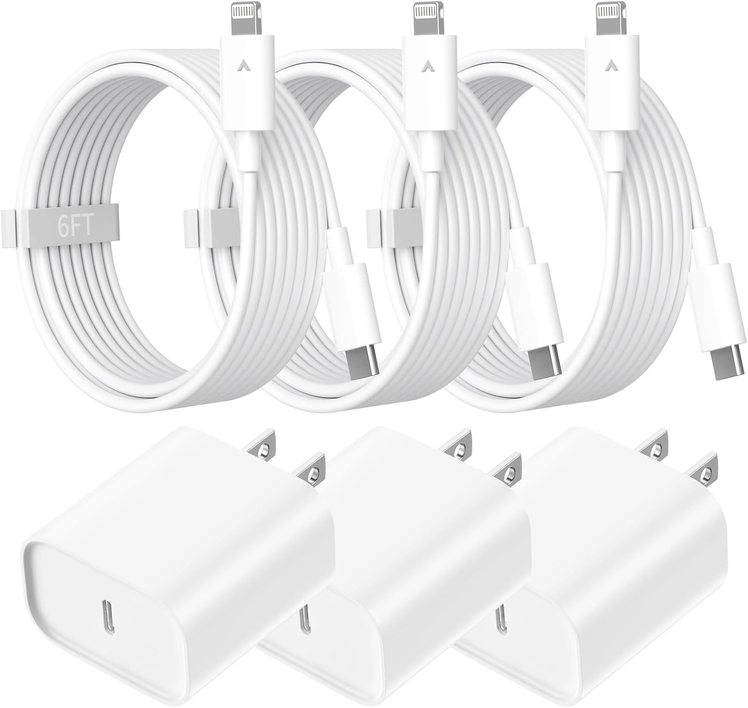3Pack 20W PD i-Phone USB C Fast Charger with 6FT Fast Charging Cable