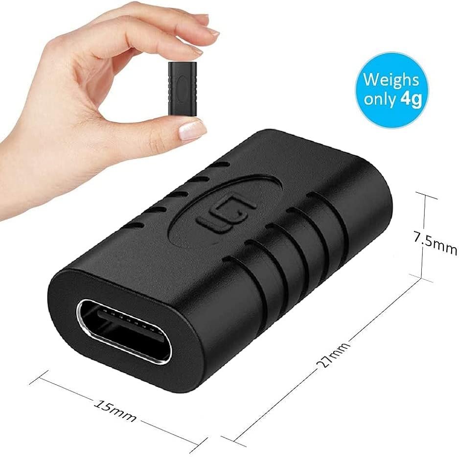 【EASY TO CARRY】 The size of the type-C female to female adapter is Small (22.86*20.32* 5.08mm) which is very convenient to carry on business, travel and work or anywhere. High-quality material is used to ensure reliability of the product.