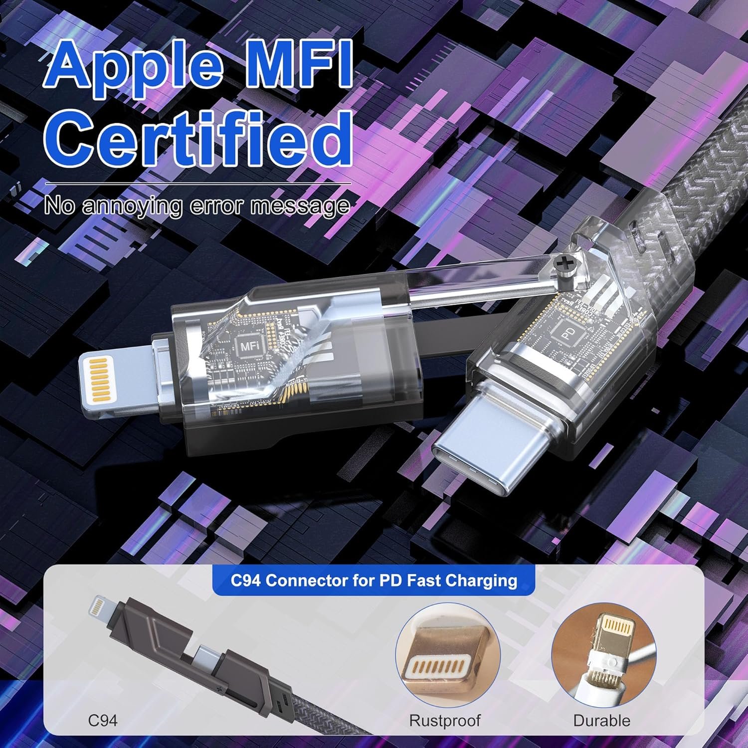 MFi certified & Built-in Smart Chip