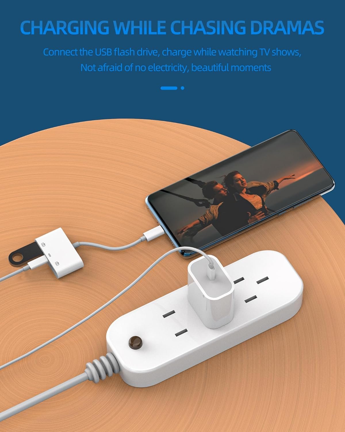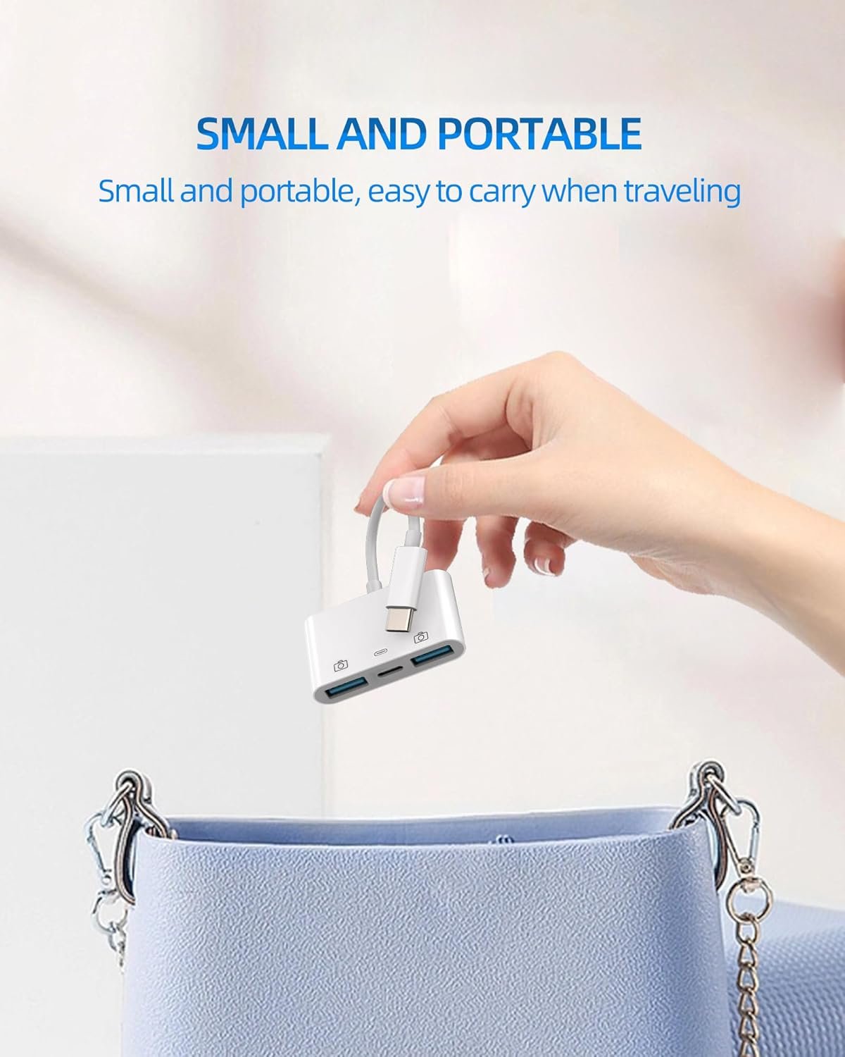 USB-C to Dual USB A Adapter(3in1)Type-C Charge Cable Accessorie Thunderbolt Charging Port Converter Keyboard Mouse U Disk USB Card Reader OTG Dongle Compatible for Samsung LG Pixel Macbook Pro