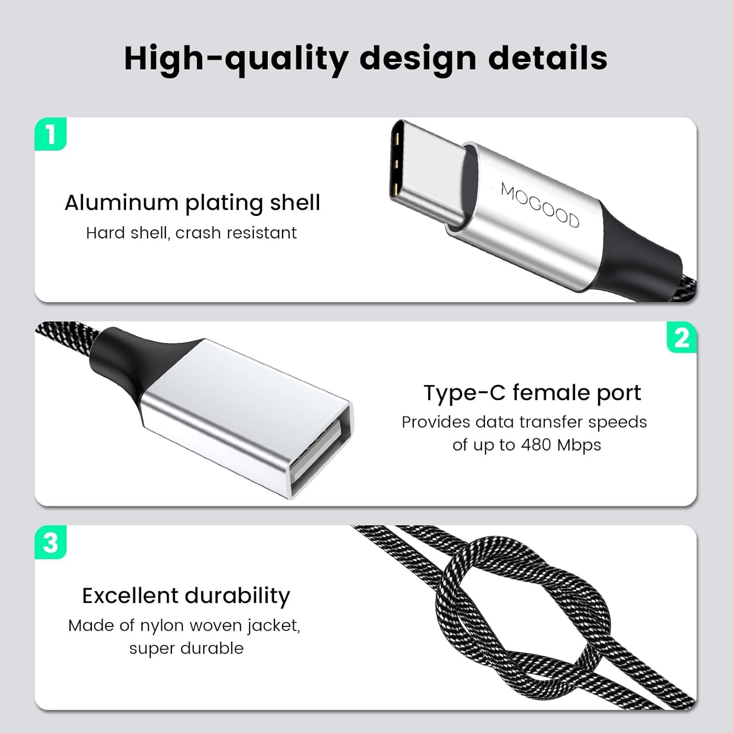 【NylonBraided】: The double usb female adapter allows you to exchange type-c enabled mobile phone/tablet and USB-A flash drive, card reader etc