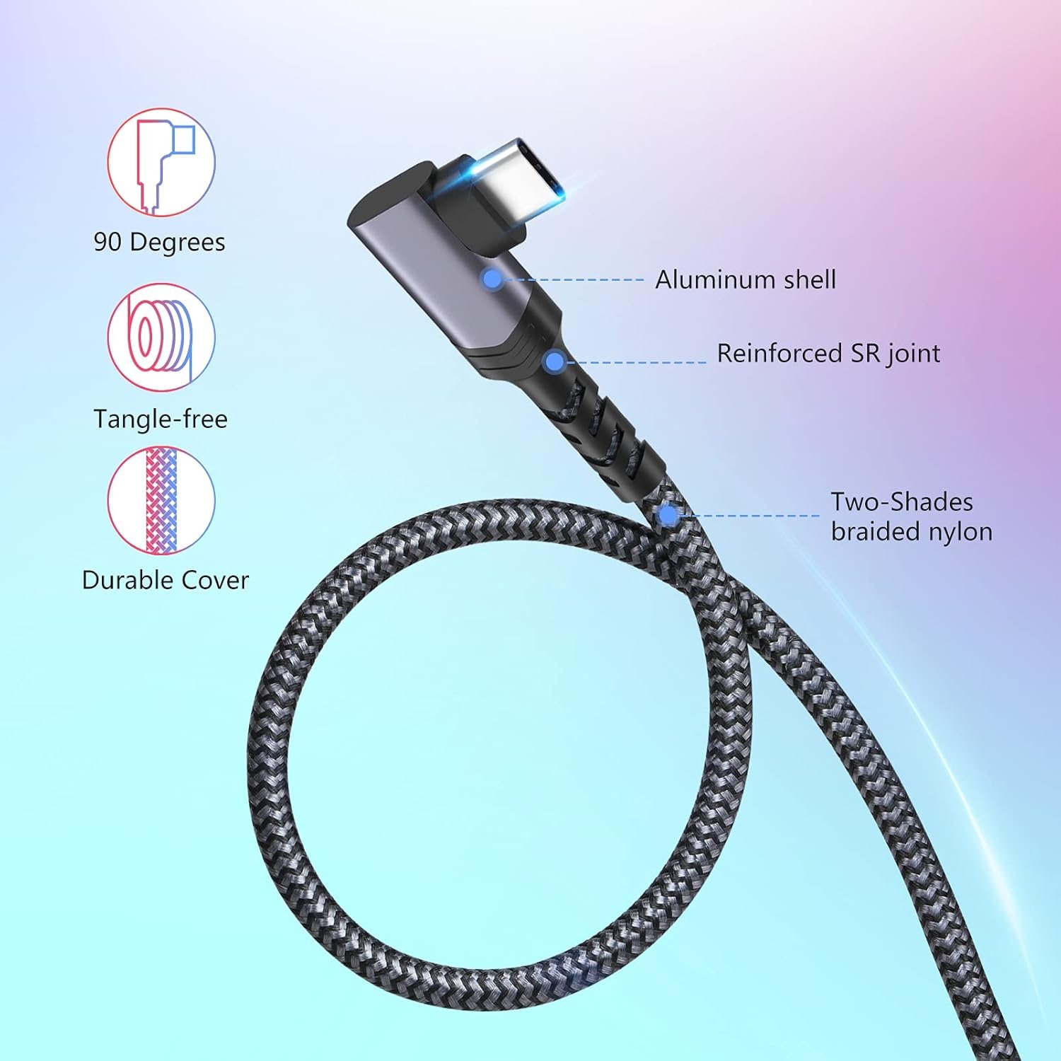 USB C to USB C Cable 100W, 3ft 90 Degrees 10Gpbs 4K Video and Audio,USB 3.1 Gen 2 Cable for USB C Hub, MacBook Pro, SSD Hard Drive, Galaxy S24, iPhone 16/15, Type C Laptops, Black,2-Pack